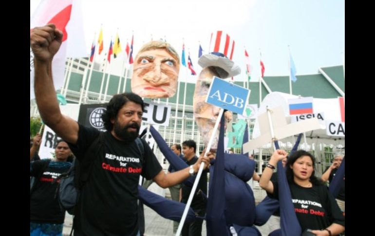 Tecnología | Diversos grupos se manifiestan frente a la embajada de las Naciones Unidas Activistas denuncian reticencia de países ricos a pagar por cambio climático Piden que países ricos paguen deuda con la tierra por emisión de gases de efecto invernadero, denuncian el propósito del acuerdo para reducir la emisión y deforestación como estrategia para despojar pueblos indígenas Por: EFE 3 de septiembre de 2012 - 07:42 hs Activistas piden que negociaciones respondan verdaderamente al cambio climático y no a intereses económicos. ESPECIAL / BANGKOK, TAILANDIA (03/SEP/2012).- Medio centenar de activistas se manifestaron hoy frente a la sede de Naciones Unidas en Bangkok para denunciar la reticencia de los países ricos a financiar a las naciones pobres en la lucha contra el cambio climático. "Países ricos: pagad vuestra deuda", se leía en las pancartas de los activistas que también portaban caretas del presidente norteamericano, Barack Obama, y de otros dirigentes europeos frente al edificio donde se celebra una reunión sobre el cambio climático. Encabezados por la organización Movimiento Pacífico de la Deuda y el Desarrollo del Sur-Asia Pacífico (JS-APMDD), en la protesta participaron representantes de colectivos de Chile, Bangladesh, Filipinas, Australia, Estados Unidos, Kenia y Sudáfrica, entre otros países. La coordinadora de JS-APMDD, Lidy Nacpil, indicó que con el Protocolo de Kioto a punto de expirar a finales de este año los países desarrollados, principalmente la Unión Europea y Estados Unidos, aún no se han comprometido a financiar la lucha contra el calentamiento global en los próximos años. Nacpil afirmó que esta deuda climática "corresponde a aquellos responsables por emitir en exceso gases de efecto invernadero a la atmósfera durante más de un siglo, aquellos responsables del cambio climático que ahora se niegan a asumir su responsabilidad". Según la activista, hace falta un gran nivel de financiación para que los pueblos de los países en desarrollo puedan hacer frente a las consecuencias del cambio climático, como la subida del nivel del mar, el aumento de sequías y el de inundaciones. Los activistas también denunciaron que proyectos como el plan para reducir emisiones de la deforestación y degradación (REDD), aprobado durante las conversaciones sobre cambio climático, contribuirán a "comercializar" la naturaleza y a desalojar a comunidades indígenas de sus tierras. La Convención Marco de la ONU sobre el Cambio Climático inició el pasado jueves en Bangkok la última ronda de negociaciones antes de la cumbre que tendrá lugar a finales de año en Doha (Catar). Estas negociaciones están dirigidas a avanzar hacia un nuevo pacto global de reducción de emisiones que los países en desarrollo ligan a garantías de financiación con la que afrontar los riesgos del calentamiento global. Temas Medio Ambiente ONU Tailandia Lee También Llega "La Niña" y este será su impacto según las predicciones No puedo tener piedad de ellos: Hugo Alón, víctima de los ataques de Hamas Tren Maya afectó cenotes, reconoce Alicia Bárcena Recibe las últimas noticias en tu e-mail Todo lo que necesitas saber para comenzar tu día Registrarse implica aceptar los Términos y Condiciones