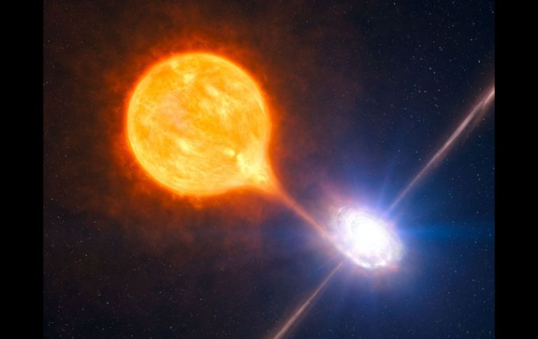 Tecnología | Captan el mayor chorro de energía Agujero negro forma burbuja gigante de gas Astrónomos del Observatorio Europeo Austral captaron el mayor chorro de materia concentrada hasta ahora encontrado en un agujero negro Por: SUN 8 de julio de 2010 - 19:52 hs Los chorros rápidos golpean al gas interestelar circundante al agujero, calentando el gas y provocando una expansión de éste. ESO / MÚNICH, ALEMANIA (08/JUL/2010).-Astrónomos del Observatorio Europeo Austral ( ESO) captaron el mayor chorro de materia concentrada hasta ahora encontrado en un agujero negro. Combinando observaciones hechas con el Very Large Telescope de ESO y el Chandra de la NASA, equipado con rayos X, los científicos encontraron una burbuja de gas caliente de mil años luz de diámetro, el doble de grande de las conocidas hasta ahora. La burbuja se denomina microquasar dentro de la comunidad científica y surgen de agujeros negros cuando liberan energía al tragar materia. Se pensaba que la mayor parte de la energía se desprendía en forma de radiación, principalmente rayos-X. Sin embargo, los nuevos resultados muestran que algunos agujeros negros puede lanzar al menos tanta energía, y tal vez mucho más, en forma de chorros de partículas en rápido movimiento, informó ESO en un comunicado. "Estamos atónitos por la cantidad de energía que el agujero negro está emitiendo", dijo Manfredd Pakull. "Este hoyo negro es sólo un poco más masivo que el Sol, pero es una versión real en miniatura de los quasar y las galaxias más poderosos de radio, que contienen agujeros negros con masas de unos pocos millones de veces la del Sol", dijo. Los chorros rápidos golpean al gas interestelar circundante al agujero, calentando el gas y provocando una expansión, lo que crea una burbuja que se infla conforme se aceleran las partículas. "La longitud de los chorros en NGC 7793 es impresionante, en comparación con el tamaño del agujero negro del que se puso en marcha", dijo Roberto Soria. "Si el agujero negro se ha reducido al tamaño de una pelota de futbol, cada chorro se extendería desde la Tierra hasta más allá de la órbita de Plutón". Los especialistas calcularon que la burbuja se expande a una velocidad de casi un millón de kilómetros por hora. Observaciones en varias bandas de energía (óptica, radio, rayos X) ayuda a los astrónomos calcular cuánto se calientan las partículas alrededor del agujero negro. El agujero negro captado se encuentra a 12 millones de años luz de distancia de la Tierra, en las afueras de la galaxia espiral NGC 7793 (eso0914b). Los astrónomos calcularon que la actividad del chorro se produce desde hace 200 mil años, al menos. Esta investigación ayudará a los astrónomos a comprender la similitud entre los pequeños agujeros negros formado por estrellas que han explotado y los agujeros negros supermasivos en el centro de las galaxias. Temas Espacio Astronomía Agujero negro Lee También ¿Desde dónde conviene ver la lluvia de estrellas Oriónidas en México? La recomendación de hoy en la cartelera de cine es “Teléfono Negro 2” Planetario Lunaria: Un viaje al universo desde Guadalajara ¿Cuál será el mejor horario para observar la lluvia de estrellas Oriónidas en México? Recibe las últimas noticias en tu e-mail Todo lo que necesitas saber para comenzar tu día Registrarse implica aceptar los Términos y Condiciones