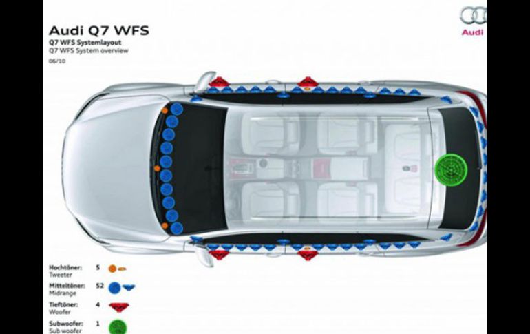 Tecnología | Presenta el surround de 62 bocinas para uno de sus automóviles Audi prepara gran sistema de audio El prototipo se desarrolla por el Institute for Digital Media Technology que permite manejar por separado a cada bocina Por: AP 19 de junio de 2010 - 19:37 hs La imagen presenta el sistema de audio. ESPECIAL / NECKARSULM, ALEMANIA, (19/JUN/2010).- La compañía alemana Audi, está planeando un Q7 con un sistema de sonido Bang & Olufsen con nada menos que 62 parlantes. El prototipo se está desarrollando con el Institute for Digital Media Technology ( IDMT), y cada bocina podrá manejarse independientemente a través de un sistema avanzado de computación en la cabina, creando un gran sistema de controles. IDMT llama a la tecnología “síntesis de campos de onda”, que permite demorar los impulsos de las bocinas de forma individual para coordinar el sonido, de forma que puedas tener una experiencia estéreo sin importar en qué parte del auto se esncuentre.. Este sistema de campo de onda ha sido aplicado en el show de luces Linden Lichtspiele Cinema, donde se utilizaron 192 parlantes. Sin embargo aún no se tiene la fecha de su lanzamiento. Temas Gadgets Automóviles Recibe las últimas noticias en tu e-mail Todo lo que necesitas saber para comenzar tu día Registrarse implica aceptar los Términos y Condiciones