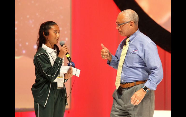GUADALAJARA, JALISCO (28/SEP/2016).- Cientos de niños y jóvenes mexicanos soñaron hoy con ponerse el traje de astronauta y viajar a Marte u otros planetas, en una charla con el director de la estadounidense NASA, Charles Bolden.Con preguntas sobre el espacio, las naves espaciales o la vida en otros planetas, unos mil estudiantes procedentes de zonas humildes de Guadalajara, en el oeste de México, rompieron la solemnidad que ha prevalecido estos días en el Congreso Internacional de Astronáutica.Sin saco y camisa arremangada, Bolden emocionó a los niños con la promesa de que Estados Unidos enviará humanos al planeta rojo en la década de 2030 y mostrándoles un video sobre las primeras misiones a Marte.Impactada por las imágenes de la Administración Nacional de la Aeronáutica y del Espacio de Estados Unidos (NASA) sobre los inicios de la conquista de Marte y sin poder contener las lágrimas, Silvia, de 11 años, comentaba a su maestro que aquello "era increíble".El video termina con la huella de un astronauta en el planeta rojo, lo que llevó a Bolden a asegurar que cualquiera en esa sala podía ser quien pisara por primera vez Marte.Por ello, los alentó a estudiar "duro" si su deseo es portar un traje de astronauta, y los niños respondieron con gritos y aplausos.Luego encomendó a los pequeños la tarea de investigar quién fue el primer mexicano en convertirse en astronauta, y pronto encontró una respuesta en voz de María Fernanda Saldaña, cuyo premio fue un pin y un parche de la NASA entregados por el propio Bolden."Cuando venimos creímos que sería algo con poca gente, pero estar frente a él (Bolden) y estar con la NASA es algo impresionante", dijo la niña, quien explicó que supo la respuesta porque una de sus maestras les dio algunos "datos curiosos" en la clase de Ciencias."¿Hay vida en otros planetas?", preguntó una pequeña. "Esa es la cuestión que nos impulsa", dijo Bolden, quien aseguró que los científicos no tienen certeza de ello, pero "sospechan que la respuesta es sí"."Creemos que la vida podría existir, vida microbiana, organismos unicelulares que podrían existir en los océanos de Europa (una de las lunas de Júpiter) o las otras lunas con hielo", afirmó Bolden, quien explicó que la NASA ha podido monitorear otros planetas gracias al telescopio espacial Hubble.La sorpresa de Bolden llegó cuando Osvaldo Becerra, de 9 años, le preguntó si existe el área 52 y los alienígenas. "Hay un área 51, pero no tengo idea de lo que hay ahí, pero yo dudo que haya alienígenas o cuerpos. No sabemos", dijo al aludir a una base aérea de Estados Unidos.Cuánto tiempo toma llegar a la Luna, de qué están hechos los trajes de astronautas, qué es un satélite o un asteroide fueron algunas de las preguntas formuladas hoy al titular de la NASA, quien alentó una y otra vez a los chicos a esforzarse para alcanzar sus sueños."Nunca tengan miedo del fracaso, incluso si creen que no son suficientemente buenos para lograr lo que quieren", dijo a las niños, y agregó que si algún astronauta hubiese temido, la humanidad no hubiese iniciado las exploraciones para comprender mejor el espacio.El 67 Congreso Internacional de Astronáutica reúne hasta el próximo viernes a directivos de agencias espaciales de todo el mundo y a más de tres mil especialistas, técnicos y científicos de 78 países, quienes discuten los avances y los retos del sector.