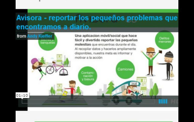 Tecnología | Avisora pretende solucionar problemas cotidianos que pueden volverse un gran lío Crean aplicación para denuncias ciudadanas El proyecto Avisora pretende solucionar problemas cotidianos que, de no atenderse, pueden volverse un gran lío Por: EL INFORMADOR 24 de mayo de 2014 - 05:32 hs Baches, fallas en el alumbrado y otras vicisitudes urbanas pueden ser denunciadas por medio de Avisora. ESPECIAL / GUADALAJARA, JALISCO (24/MAY/2014).- Si estás harto de que no se haga nada por reparar el alumbrado público de tu cuadra, que no hayan retirado el auto abandonado o tapado el bache que crece día a día, una empresa tapatía desarrolló una solución a través de una plataforma digital. Diego Méndez y Andy Kieffer, desarrolladores del proyecto Avisora, buscan dar solución a problemáticas cotidianas aparentemente insignificantes que pueden convertirse en un gran problema si no se atienden a tiempo. A través de la plataforma la gente hace la denuncia ciudadana como en Twitter o Facebook en la que pueden tomar fotos del desperfecto, comentarlo y compartirlo para alertar a sus conocidos y a las autoridades para que atiendan el problema. Al momento de que el usuario captura la información se genera en el sistema un mapa, donde se ubica el sitio de la problemática, la fecha y hora en que se hizo el reporte. “Podemos identificar cosas muy cotidianas... un problema de basura se puede convertir a futuro en un foco infeccioso y lo que buscamos es hacer visibles estos problemas a través de una plataforma en la que un ciudadano desde su computadora o teléfono móvil pueda tomar una fotografía, escribir un comentario, elegir la categoría y esta información se sube a un mapa y puede ser visible para todos”, detalló Diego Méndez. NAVEGA La aplicación puede consultarse desde la página web http://www.avisora.mx/ o descargar la aplicación para dispositivos móviles con sistema operativo iOS Temas Gadgets Aplicaciones Recibe las últimas noticias en tu e-mail Todo lo que necesitas saber para comenzar tu día Registrarse implica aceptar los Términos y Condiciones
