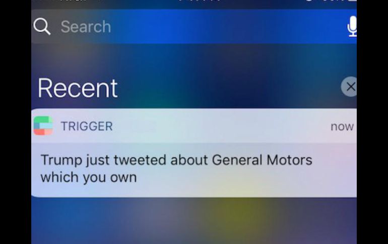 NUEVA YORK, ESTADOS UNIDOS (11/ENE/2017).- La compañía estadounidense Trigger Finance ha creado una nueva herramienta en su aplicación móvil que alerta a los usuarios cuando el presidente electo, Donald Trump, tuitea sobre una empresa cotizada en la que han invertido.La herramienta gratuita "Trump Trigger", de momento sólo disponible para iPhone, se lanzó a principios de enero con el fin de que los inversores tengan tiempo para anticiparse o reaccionar de inmediato a los cambios en el precio de sus acciones, en tanto que los mercados prestan mucha atención a los comentarios del magnate.Según explica la compañía en su sitio web, un solo tuit desfavorable del presidente electo puede repercutir en "miles de millones de dólares" de capitalización de mercado de las grandes empresas, al desencadenar en importantes bajadas en su cotización en bolsa."Nuestros usuarios ven esto como una oportunidad de inversión y una forma de gestionar el riesgo de su cartera", aseguró la cofundadora y directora ejecutiva de Trigger Finance, Rachel Mayer, en declaraciones al periódico The Washington Post.Y es que, desde el inicio de su campaña, el presidente electo ha utilizado Twitter para lanzar diversos mensajes de advertencia a empresas que decidan producir fuera de Estados Unidos, y para pronunciarse respecto a la actividad o el futuro de ciertas compañías.Después de que el magnate criticara a Boeing el pasado mes de diciembre en relación al elevado coste que supone producir un avión Air Force One, las acciones de la compañía cayeron cerca de un 2 % en las horas subsiguientes.Boeing tuvo que responder en tiempo récord para aclarar que su avión cuesta 170 millones de dólares, no 4.000 millones como había afirmado Trump en su tuit.Lo mismo le ocurrió al fabricante aeronáutico Lockheed Martin, que sufrió una bajada del 2,5 % en Wall Street como consecuencia de un tuit de Trump, en el que aseguraba que su programa de fabricación de aviones de combate F35 es "demasiado costoso".También salió mal parada la compañía japonesa Toyota, que el pasado jueves tuvo que refutar un mensaje del magnate en el que advirtió de que la empresa se enfrenta a "aranceles más altos" si decide construir una nueva planta en México para producir automóviles y exportarlos a EU.Bastaron menos de 140 caracteres para que el valor en bolsa de Toyota Motors cayera en más de mil 200 millones de dólares, si bien más tarde pudo recuperar estas pérdidas.En cambio, Trump elogió este lunes al grupo Fiat Chrysler por su intención de invertir mil millones de dólares en dos de sus plantas de Estados Unidos, lo que hizo que sus acciones subieran un 1.4 % a media sesión.El canal CNN aseguró haber hablado con varios directivos de empresas tecnológicas de California que tienen a empleados "pendientes de la red social a altas horas de la madrugada", ante el temor de que Trump les mencione en uno de sus mensajes matutinos y haga caer en picado las acciones de la compañía.El uso vehemente de Twitter por parte del presidente electo, que ha manifestado su preferencia por este medio para comunicarse con el público y expresar su opinión, es un hecho sin precedentes en la política estadounidense y mantiene en vilo a las empresas.Como señala el portal financiero MarketWatch, desde hace varios años los inversores consideran esta red social como una herramienta fundamental para informarse a tiempo real de las tendencias mundiales, los datos sobre índices económicos y los comentarios de personalidades políticas, analistas e investigadores.