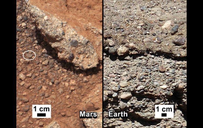 Tecnología | Imágenes del explorador evidencian que hubo corrientes de cerca de un metro de altura Curiosity descubre rastro de flujo de agua en Marte Imágenes del explorador evidencian que hubo corrientes de aproximadamente un metro de altura, que pudieron haber albergado vida, dice la NASA Por: EFE 27 de septiembre de 2012 - 19:14 hs Imagen captada por el Curiosity de grava en lo que habría sido un arroyo (i) junto a una foto de rocas similares en la Tierra. AP / WASHINGTON, ESTADOS UNIDOS (27/SEP/2012).- El lugar en el que aterrizó el explorador Curiosity en Marte estuvo cubierto por corrientes de agua de aproximadamente un metro de altura que pudieron haber albergado vida, informó hoy la Agencia Espacial estadounidense (NASA). Las cámaras del Curiosity proporcionaron la primera prueba de que en el planeta rojo hubo agua, al menos en una parte, pero "durante mucho tiempo". El científico John Grotzinger, del Laboratorio de Ciencia de Marte de la NASA, concluyó que las fotografías enviadas desde el explorador Curiosity revelan que el planeta fue "habitable", descubriendo así uno de los principales objetivos de la misión. Grotzinger precisó que el área donde se tomaron las fotografías necesitaba ser estudiada con más detenimiento, pero aseguró que ese "flujo de agua pudo ser un entorno habitable". Las fotos de las rocas que tomó el rover muestran la redondez de las piedras y la dispersión de grava y guijarros que pudieron ser arrastrados por el agua a lo largo de unos 40 kilómetros. William Dietrich, profesor de la geomorfología y miembro del equipo de ciencia del Curiosity, presentó algunos guijarros redondeados de nuestro planeta, que según él son similares a los de las imágenes. "Se han escrito ríos de tinta sobre los canales de Marte con muchas hipótesis diferentes sobre sus flujos -dijo Dietrich-. Esta es la primera vez que estamos viendo en realidad grava transportada por agua en Marte. Esta es una transición de la especulación sobre el tamaño del material del cauce a la observación directa del mismo". Curiosity aterrizó a principios de agosto en Marte y desde entonces ha pasado gran parte del tiempo probando sistemas e instrumentos para sus dos años de estancia en el planeta. Sin embargo, el explorador comenzó a enviar imágenes poco después de su aterrizaje con una calidad los suficientemente alta como para que los científicos puedan asegurar que un día allí hubo agua. Temas Marte NASA Astronomía Curiosity Lee También Planetario Lunaria: Un viaje al universo desde Guadalajara ¿Cuál será el mejor horario para observar la lluvia de estrellas Oriónidas en México? NASA confirma si el cometa 31/ATLAS amenaza la vida en la Tierra o no Asteroide pasó muy cerca de la Tierra; esto ocurrió Recibe las últimas noticias en tu e-mail Todo lo que necesitas saber para comenzar tu día Registrarse implica aceptar los Términos y Condiciones