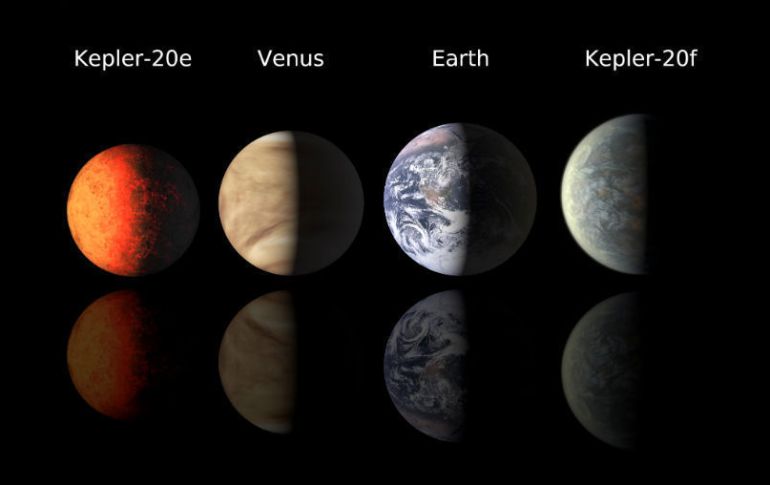 Tecnología | Kepler-20e y 20f orbitan estrella distante Descubren dos planetas del tamaño de la Tierra Son los planetas más pequeños hallados hasta ahora en una órbita en torno a una estrella fuera de nuestro sistema solar Por: EFE 20 de diciembre de 2011 - 14:44 hs Combo de fotografías cedido por la NASA en la que se comparan las relaciones de tamaño de los planetas. EFE / WASHINGTON, ESTADOS UNIDOS (20/DIC/2011).- Los astrónomos de la misión Kepler de la NASA anunciaron hoy la identificación de dos planetas del tamaño de la Tierra, que orbitan una estrella a casi mil años luz y que se constituyen en los mundos fuera del sistema solar más pequeños hallados hasta ahora, aunque no parecen habitables. Los dos planetas, bautizados Kepler-20e y 20f, son los más pequeños hallados hasta ahora en una órbita en torno a una estrella fuera de nuestro sistema solar y uno de ellos tiene un diámetro un 3 % menor que el de la Tierra, mientras que el otro es un 3 % mayor. Ambos orbitan la estrella Kepler-20, un astro de tipo G levemente más frío que el Sol y ubicado a casi mil años luz de la Tierra, señalaron los científicos. "Después de casi tres años el observatorio orbital Kepler ha confirmado la existencia de planetas que orbitan estrellas", dijo en una conferencia telefónica Nick Gautier, del Laboratorio de Propulsión de la agencia espacial estadounidense (NASA), en Pasadena, California (EE.UU.). Dado que orbitan muy cerca de su astro, los investigadores creen que debido a las altas temperaturas no son capaces de sustentar vida. Sin embargo, el descubrimiento aproxima a los científicos a su meta de hallar un planeta similar a la Tierra y que sea habitable. Kepler-20f completa su órbita cada 19,6 días a una distancia de 16,6 millones de kilómetros. Estas órbitas tan reducidas resultan en temperaturas planetarias entre los 760 y 430 grados Celsius, por lo cual se considera casi imposible la existencia de agua líquida en los planetas. "Hemos cruzado un umbral: por primera vez detectamos planetas más pequeños que la Tierra en torno a otra estrella", dijo el investigador Francois Fressin, del Centro Harvard Smithsonian para Astrofísica en Cambridge, Massachusetts. "Hemos probado que existen planetas como la Tierra en torno a otras estrellas y, más importante aún, hemos probado que la humanidad puede detectarlos", agregó. "Es el comienzo de una era". David Charbonneau, profesor de astronomía en la Universidad Harvard, explicó que para descubrir los planetas, los astrónomos que trabajan con el telescopio espacial Kepler buscaron disminuciones periódicas en el brillo de las estrellas, que denotan el paso del planeta. Luego los científicos usaron observatorios en tierra para confirmar la existencia de los planetas. Charbonneau explicó que, en realidad, los astrónomos han encontrado cinco planetas y señaló que "la arquitectura de este sistema solar es totalmente sorprendente". "En nuestro sistema solar hay ocho planetas rocosos, ubicados más cerca del sol, y otros más gaseosos, ubicados más lejos", explicó. "En el sistema de la Kepler-20 los planetas están alegremente mezclados: el primero que se encuentra es parecido a Neptuno, el siguiente es rocoso, el siguiente Neptuno, el otro rocoso... uno grande y uno chico, uno grande y uno chico, uno grande... y todos orbitan dentro de la distancia que Mercurio orbita al Sol" Los investigadores han identificado ya más de 700 planetas fuera del sistema solar. Desde su lanzamiento en marzo de 2009, el telescopio Kepler ha ubicado 2.326 posibles planetas y ha confirmado la existencia de 28. "Durante las últimas dos décadas ha estado claro que al final los astrónomos alcanzarían esta meta, pero igual es fantástico saber que se ha logrado la detección", dijo el astrónomo Greg Laughlin, de la Universidad de California, en un mensaje electrónico. En la teleconferencia organizada por la agencia espacial estadounidense NASA, los científicos explicaron que Kepler-20e orbita su estrella cada 6,1 días a una distancia de 7,6 millones de kilómetros, esto es casi 20 veces más cerca de su astro que la Tierra, que orbita el sol a unos 150 millones de kilómetros. "Son muy pocas las posibilidades de vida en cualquiera de estos planetas (...) pero no puede excluirse la posibilidad de que hayan sido habitables en el pasado, cuando pueden haber estado más lejos de su estrella", puntualizó Fressin. Temas NASA Descubrimientos Astronomía Planetas Lee También Estos son los nuevos datos revelados del cometa 3I/ATLAS ¿Cuál es la mejor hora para ver la lluvia de estrellas HOY en México? ¿Cuándo y cómo observar la próxima lluvia de estrellas en México? Lluvia de estrellas Dracónidas 2025: Fecha y horario para verla en su punto máximo Recibe las últimas noticias en tu e-mail Todo lo que necesitas saber para comenzar tu día Registrarse implica aceptar los Términos y Condiciones