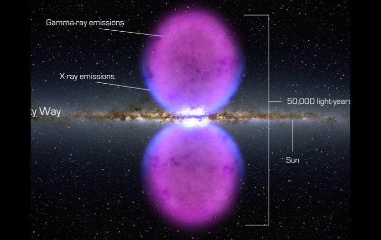Tecnología | Científicos no entienden su naturaleza ni su origen Descubren materia desconocida en medio de la Vía Láctea Un par de burbujas de rayos gamma se expanden a través y debajo del centro de nuestra galaxia, según la NASA Por: SUN 10 de noviembre de 2010 - 17:12 hs Una gigante y misteriosa estructura en forma de un par de burbujas, donde cada una mide 25 mil años luz de alto. EL UNIVERSAL / CIUDAD DE MÉXICO (10/NOV/2010).- Científicos de la agencia espacial estadounidense (NASA) descubrieron una gigante y misteriosa estructura nunca antes vista en nuestra galaxia, que tiene la forma de un par de burbujas que se expanden a través y debajo del centro de la Vía Láctea. Personal del Centro Espacial y de Vuelo Goddard estimaron que cada burbuja mide 25 mil años luz de alto y que éstas pudieron surgir del remanente de una explosión ocurrida hace 50 mil años luz al interior de un agujero negro. "Nosotros realmente no entendemos en su totalidad su naturaleza ni origen", aceptó Doug Finkbeiner, astrónomo del Centro de Astrofísica Harvard-Smithsoniano de la Universidad de Cambridge en Massachusets. Cada burbuja posee energía de entre uno y 10 mil millones de voltios, la cual emerge justo del centro de la galaxia y se extiende 50 grados al norte y al sur, con lo que se expande en un rango mayor de la mitad del cielo visible a partir de la constelación de Virgo hacia la constelación de Grus. "En otras galaxias hemos detectado destellos con salidas de gas.Cualquiera que sea la fuente de energía detrás de estas enormes burbujas, puede estar relacionado con muchas incógnitas de la astrofísica", dijo David Spergel, de la Universidad de Princeton en Nueva Jersey. El hallazgo hecho por el equipo de Finkbeiner, cuyos resultados se publicarán en la revista The Astrophysical Journal, se logró gracias al telescopio Fermi de Gran Alcance (LAT, por sus siglas en inglés), el más sensible y con mayor resolución de rayos gamma nunca antes lanzado al espacio. -¿Siempre estuvo ahí? La NASA estimó que esta nube de rayos gama no se había detectado pues al moverse casi a la misma velocidad de la luz sus partículas interactúan con ésta y con el gas interestelar de la Vía Láctea. Además, la NASA publicó en su página de internet que el descubrimiento de estas burbujas gigantes se debió a que el telescopio LAT "refina constantemente sus modelos para descubrir nuevas fuentes de rayos gama desde fuentes oscuras". Indicios de la existencia de las burbujas aparecieron en los primeros datos del satélite alemán Roentgen, en donde las observaciones con rayos X sugerían una sutil evidencia de bordes de burbujas cerca del área central de nuestra galaxia. La sonda Wilkinson de la NASA también había detectado un exceso de señales de radio justo en la zona donde el telescopio LAT encontró las burbujas de rayos gamma. Luego de dos años de monitoreo, el equipo del Centro Espacial y de Vuelo Goddard de la NASA publicó los resultados del Fermi en los que se encontró esta estructura hasta ahora desconocida. Temas NASA Astronomía Vía Láctea Lee También No lo olvides, la Vía RecreActiva de Guadalajara tendrá cambios este domingo por la Romería Romería 2025: Estos son los cierres viales que habrá en Zapopan desde HOY Estos son los nuevos datos revelados del cometa 3I/ATLAS ¿Cuál es la mejor hora para ver la lluvia de estrellas HOY en México? Recibe las últimas noticias en tu e-mail Todo lo que necesitas saber para comenzar tu día Registrarse implica aceptar los Términos y Condiciones