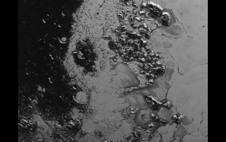Tecnología | La cordillera está entre la llanura helada y un terreno oscuro lleno de cráteres Descubren otra cordillera en el 'corazón' de Plutón La cordillera está situada entre la llanura helada y un terreno oscuro lleno de cráteres Por: SUN 21 de julio de 2015 - 20:20 hs La imagen se capturó el pasado 14 de julio y fue enviada a la Tierra el 20 de julio. TWITTER / @NASA CIUDAD DE MÉXICO (21/JUL/2015).- La NASA, mediante la sonda espacial New Horizons, descubrió una nueva cordillera en la zona con forma de "corazón" en el planeta enano Plutón. La cordillera está situada entra la llanura helada y un terreno oscuro lleno de cráteres. La imagen se capturó el pasado 14 de julio y fue enviada a la Tierra el 20 de julio. Los picos de esta nueva cordillera se estiman que tiene una medida de uno a 1,5 kilómetros de altura. Este martes, la sonda espacial también captó la imagen de dos lunas de Plutón: Nix e Hydra, que son aproximadamente del mismo tamaño. Según la NASA, Nix tiene forma de frijol e Hydra posee una figura irregular. Temas NASA Astronomía Planetas Lee También Planetario Lunaria: Un viaje al universo desde Guadalajara ¿Cuál será el mejor horario para observar la lluvia de estrellas Oriónidas en México? NASA confirma si el cometa 31/ATLAS amenaza la vida en la Tierra o no Asteroide pasó muy cerca de la Tierra; esto ocurrió Recibe las últimas noticias en tu e-mail Todo lo que necesitas saber para comenzar tu día Registrarse implica aceptar los Términos y Condiciones