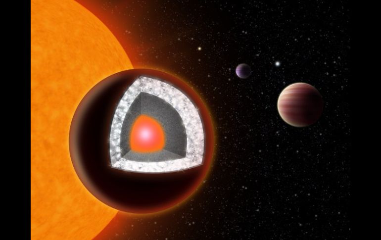 Tecnología | Según científicos, el ''55 Cancri e'' está compuesto de grafito y diamante Descubren ''planeta diamante'', dos veces más grande que la Tierra El 55 Cancri e, descubierto en el 2004, está compuesto de grafito y diamante en vez de agua y granito Por: EFE 11 de octubre de 2012 - 18:51 hs Imagen de la composición del 55 Cancri e. El planeta orbita tan rápido que un año dura 18 días. AFP-UNIVERSIDAD DE YALE / WASHINGTON, ESTADOS UNIDOS (11/OCT/2012).- Científicos de la Universidad de Yale lograron determinar que el planeta "55 Cancri e", descubierto en el 2004, está compuesto de grafito y diamante, es dos veces más grande que la Tierra y con una masa ocho veces mayor, según un estudio difundido hoy. "La superficie de este planeta parece estar cubierta de grafito y el diamante en vez de agua y granito", señaló el investigador principal, Nikku Madhusudhan, de la Universidad de Yale. El planeta 55 Cancri e es uno de los cinco planetas que orbitan en torno a una estrella similar al Sol en la constelación de Cáncer, a 40 años luz de la Tierra, relativamente cerca. Este planeta rocoso había sido descubierto en 2004 con el sistema de la velocidad radial y fue observado mediante el método del tránsito el año pasado, cuando los científicos asumieron que podría tener una composición química similar al agua. El planeta orbita tan rápido que un año dura 18 días, frente a los 365 de la Tierra, es además extremadamente caliente ya que, según los investigadores, su temperatura alcanza los dos mil 148 grados centígrados. No es la primera vez que se descubre un planeta de diamante, pero es el primero que se encuentra orbitando una estrella similar al Sol, tan cercano a la Tierra y de un tamaño superior. "Parece estar compuesto principalmente de carbono (como el grafito y el diamante), hierro, carburo de silicio, y, posiblemente, algunos silicatos", apuntan los investigadores que publicarán el estudio en la revista Astrophysical Journal Letters. El estudio calcula que al menos un tercio de la masa del planeta, equivalente a tres veces la masa de la Tierra, podría ser diamante. Este descubrimiento significa que "ya no se puede asumir que los planetas rocosos distantes tienen componentes químicos, interiores, ambientes, o biologías similares a las de la Tierra", señaló Madhusudhan. Temas Descubrimientos Astronomía Planetas Lee También ¿Cuál es la mejor hora para ver la lluvia de estrellas HOY en México? ¿Cuándo y cómo observar la próxima lluvia de estrellas en México? Lluvia de estrellas Dracónidas 2025: Fecha y horario para verla en su punto máximo En esta fecha podrás ver la superluna de la Cosecha desde México Recibe las últimas noticias en tu e-mail Todo lo que necesitas saber para comenzar tu día Registrarse implica aceptar los Términos y Condiciones