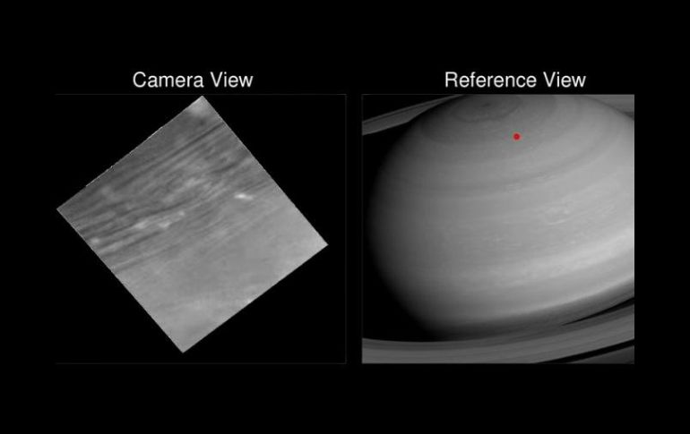 CIUDAD DE MÉXICO (04/MAY/2017).- La Administración Nacional para la Aeronáutica y el Espacio (NASA, por sus siglas en inglés) presentó una nueva película desde la nave espacial Cassini, en la que se observa su paso por el hueco entre Saturno y sus anillos. El filme inicia con una vista de un remolino en el polo norte del planeta, después se dirige más allá del límite exterior de la corriente de chorro hexagonal. La cinta muestra una hora de observaciones mientras Cassini se mueve hacia la parte sur del planeta de los anillos el 26 de abril pasado, destacó la NASA en su página de Internet. "Me sorprendió ver tantos bordes afilados a lo largo del límite exterior del hexágono y la pared del ojo del vórtice polar", comentó Kunio Sayanagi, asociado del equipo de imagen de Cassini, en la Universidad de Hampton en Virginia. "Algo debe estar manteniendo diferentes latitudes al margen de la mezcla para producir esos bordes", agregó. La agencia espacial estadounidense explicó que conforme los fotogramas de la película fueron capturados, la altitud de la nave espacial sobre las nubes cayó de 72.400 a 6.700 kilómetros. Al tiempo que eso ocurría, las características resolubles más pequeñas en la atmósfera cambiaron de 8.7 kilómetros por pixel a 810 metros por pixel. Por su parte, Andrew Ingersoll, miembro del equipo de imágenes de Cassini con base en Caltech en Pasadena, California, destacó que planean realizar actualizaciones de sus observaciones para una oportunidad similar el 28 de junio, para la que se esperan mejores imágenes. Luego de orbitar durante 13 años alrededor de Saturno y a 20 años de su lanzamiento desde la tierra, la NASA decidió finalizar la misión con una caída en el planeta el 15 de septiembre, a fin de proteger y preservar sus lunas para futuras exploraciones. Al final de la misión los científicos esperan que la nave les brinde una visión de gran alcance de la estructura interna del planeta. Los orígenes de los anillos, capturar las vistas más cercanas de la historia de las nubes de Saturno.