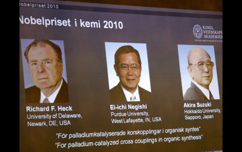 Tecnología | A pesar de no haber trabajado juntos, Heck , Negishi y Suzuki coincidieron en su investigación de la química orgánica Dividen Nobel de Química entre aportes a medicina, agricultura y electrónica Debido a que descubrieron y describieron por separado tres tipos de reacciones con múltiples aplicaciones en medicina, agricultura, química industrial y electrónica Por: EFE 6 de octubre de 2010 - 06:50 hs El mayor logro de estos químicos ha sido encontrar distintas fórmulas para hacer reaccionar entre sí a dos átomos de carbono. EFE / ESTOCOLMO, SUECIA (06/OCT/2010).- El Nobel de Química premió la labor de investigación de tres químicos que descubrieron y describieron por separado tres tipos de reacciones con múltiples aplicaciones en la medicina, la agricultura, la química industrial y la electrónica. Pese a no haber trabajado juntos, el estadounidense Richard Heck y los japoneses Ei-ichi Negishi y Akira Suzuki tienen en común el haber dedicado su vida a la investigación en el ámbito de la química orgánica y haber puesto sus apellidos a sendas reacciones químicas con un enorme potencial. Su mayor logro ha sido encontrar distintas fórmulas para hacer reaccionar entre sí a dos átomos de carbono que sirvan de base para sintetizar nuevas moléculas que se pueden emplear en la lucha contra el cáncer o la fabricación de aparatos de electrónica de consumo. Richard F. Heck nació en 1931 en Springfield (Estados Unidos), y se doctoró en la Universidad de California Los Ángeles (UCLA), donde prosiguió con sus investigaciones tras una estancia profesional en Suiza. Posteriormente, Heck siguió investigando en el sector privado y en 1971 saltó a la Universidad de Delaware, en Nueva York, donde permaneció hasta su jubilación en 1989. Su labor más destacable en el campo de la química se produjo entre finales de la década de 1960 y principios de la de 1970, cuando desarrolló la reacción que lleva su nombre, que es la que le ha valido el premio Nobel de Química este año. La comunidad científica internacional ha reconocido con el paso de los años el gran potencial de su descubrimiento para la síntesis de nuevas moléculas orgánicas complejas y muchos investigadores han elaborado aplicaciones para la medicina y la agricultura basándose en su trabajo. En 2006 recibió el premio Herbert C. Brown de Investigación Creativa. Por su parte, el japonés Ei-ichi Negishi nació en 1935 en Changchun (actualmente la República Popular China) y se graduó en la Universidad de Tokio en 1958. Posteriormente se trasladó a Estados Unidos para continuar sus estudios: realizó su doctorado en la Universidad de Pensilvania y allí prosiguió con su carrera como investigador entre los años 1966 y 1972. En las siguientes décadas, pasaría por las universidades de Siracusa y Purdue, donde continuó con su trabajo, hasta su jubilación en 1999. La reacción Negishi es el descubrimiento más conocido dentro de su extensa obra, que comprende más de 300 artículos de investigación, 30 ensayos, varias patentes y dos libros. Entre los galardones que ha recibido este investigador destacan el Premio de la Sociedad Química de Japón (1997), el Hebert N. Mccoy de la Universidad de Purdue (1998) y el Sir Edward Frankland de la Real Sociedad de Química (2000). El tercer galardonado con el Premio Nobel es Akira Suzuki, nacido en 1930 en Hokkaido (Japón) y doctorado por la universidad de ese mismo nombre, donde inició su labor investigadora. Entre 1963 y 1965, Suzuki trabajó como posdoctorado en la Universidad de Purdue, donde también investigó su compatriota Negishi, para regresar posteriormente a la Universidad de Hokkaido. En 1979, publicó por primera vez la reacción química que lleva su nombre y que le ha valido el Nobel de Química de esta edición. Tras su jubilación en 1994, colaboró puntualmente con las universidades niponas de Okayama y Kurashiki. Temas Descubrimientos ciencia Premios Nobel Ciencia médica Química Lee También László Krasznahorkai: Libros para adentrarse al mundo del nuevo Nobel de Literatura Esta es la última guerra que Trump resolvió, según él mismo Las guerras que Trump dice haber resuelto y por las que merece el Nobel Trump dijo merecer Nobel de la Paz por haber "terminado con siete guerras" Recibe las últimas noticias en tu e-mail Todo lo que necesitas saber para comenzar tu día Registrarse implica aceptar los Términos y Condiciones
