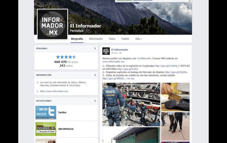 Tecnología | La empresa Socialbakers presenta el reporte 'Lo mejor de Social Media 2014' EL INFORMADOR, entre marcas líderes en redes sociales La empresa Socialbakers reconoce el nivel de interacción y el alcance de las publicaciones de esta casa editorial, en internet Por: EL INFORMADOR 30 de enero de 2015 - 03:45 hs En la página de Facebook de EL INFORMADOR, más de 660 mil usuarios interactúan con este medio. FACEBOOK / elinformador GUADALAJARA, JALISCO (30/ENE/2015).- Por el nivel de interacción con sus seguidores de redes sociales y el alcance de sus publicaciones, EL INFORMADOR fue una de las marcas de América Latina que destacaron en el reporte “Lo Mejor de Social Media 2014”, elaborado por la empresa especializada Socialbakers. La página en Facebook de EL INFORMADOR, donde más de 660 mil usuarios interactúan con este medio, fue ubicada en la quinta posición de la lista de 10 compañías más destacadas de la región. El mejor resultado fue para la marca mexicana de zapatos “Andrea”, seguidos por las cervezas “Corona”, “Modelo” y “Victoria”. Por debajo de este diario tapatío estuvieron la marca de ropa “47 Street”, “Distroller”, “Converse”, “Johnnie Walker” y “Coca Cola”. A través de una transmisión especial por internet los autores del informe explicaron que para elaborar esta calificación no sólo se tomó en cuenta el número de seguidores por página, sino la atención que otorgan las marcas a sus seguidores en el ciberespacio. Temas Internet Facebook Redes Sociales Lee También Yo Jalisco Apoyo para el Transporte entregará nuevas tarjetas este 23 de octubre Pensión Bienestar: El motivo por el cual no pagarán aguinaldo en 2025 Martinoli lanza indirecta a la polémica con Santiago Fernández Videos que alguna vez aterrorizaron a Internet y aún dan escalofríos Recibe las últimas noticias en tu e-mail Todo lo que necesitas saber para comenzar tu día Registrarse implica aceptar los Términos y Condiciones