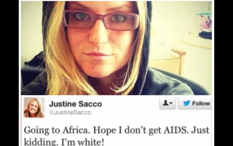 Tecnología | Hace comentario discriminatorio en contra de gente de color y VIH Ejecutiva de EU, despedida por tuit racista Hace comentario discriminatorio en contra de gente de color y VIH Por: EL INFORMADOR 22 de diciembre de 2013 - 11:20 hs La marea de críticas no se hizo esperar, por lo que tuvo que cerrar su cuenta de Twitter @JustineSacco. ESPECIAL / CIUDAD DE MÉXICO (22/DIC/2013).- Debido a un tuit racista sobre África, la ejecutiva de relaciones públicas del corporativo estadunidense IAC fue despedida. Justine Sacco se disponía a tomar un vuelo a Sudáfrica el pasado viernes, pero antes de abordar publicó en su cuenta de Twitter: “Me voy a África. Espero no coger el Sida. Es broma. ¡Yo soy blanca!”. De inmediato el tuit se volvió viral en esa red social, lo que despertó una serie de reacciones entre los usuarios, quienes le reclamaron y mostraron su indignación a la ejecutiva con el hashtag #HasJustineLandedYet [Justine no ha aterrizado aún]. Esto también fue aprovechado por una ONG, quien creó el dominio JustineSacco.com para recaudar fondos para la lucha contra el Sida. El diario estadounidense Los Angeles Times publicó la reacción de la empresa IAC, quien por medio de un comunicado expresó su desagrado por el tuit de su trabajadora. “Es comentario ofensivo e indignante que no refleja los puntos de vista y valores de IAC,” dijo el corporativo. “Este es un asunto muy serio y estamos tomando las medidas adecuadas”, añadió IAC y anunció que despedirá a Justine Sacco, además de que eliminará cualquier referencia a ella en su portal web. De acuerdo con el rotativo, no era el primer tuit polémico que publicaba. En su cuenta de Twitter Justine había publicado con anterioridad: “Tuve un sueño erótico con un niño autista esta noche”. Ya en Sudáfrica, la joven mandó un comunicado a un diario local donde pidió disculpas por el desafortunado mensaje que publicó. “No puedo expresar con palabras cuánto lo siento. Pido disculpas. Hay una grave crisis a causa del Sida y por desgracia es muy fácil hablar con ligereza de una epidemia a la que nunca me he enfrentado directamente”, dijo. Debido a las críticas, Justine Sacco tuvo que cerrar su cuenta de Twitter. CON INFORMACIÓN DE SIN EMBARGO Temas Internet África Estados Unidos VIH Racismo SIDA Twitter Lee También Así se prevé que avance el desarrollo de "Sonia" en México Visa laser: ¿Qué vigencia tiene y cuáles son sus limitaciones? ¿Qué viene en el clima para México en los próximos días? Trump ve oportunidad de firmar la paz con Irán, pero "primero Rusia" Recibe las últimas noticias en tu e-mail Todo lo que necesitas saber para comenzar tu día Registrarse implica aceptar los Términos y Condiciones