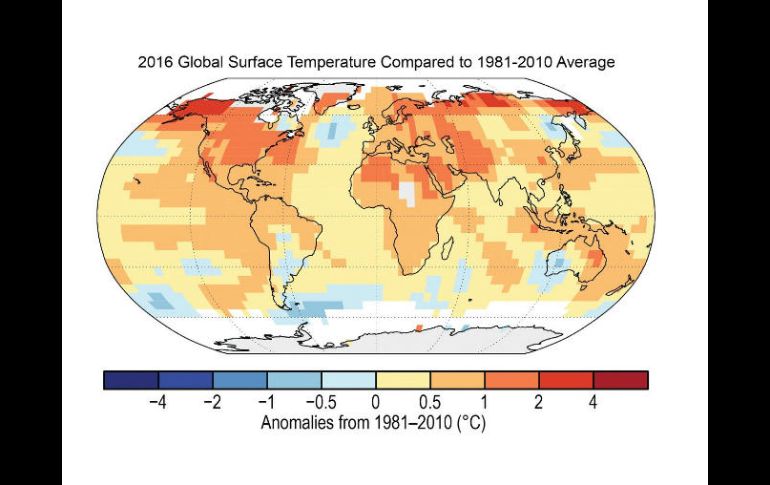 WASHINGTON, ESTADOS UNIDOS (10/AGO/2017).- La Agencia Nacional de Océanos y Atmósfera (NOAA) de EU. confirmó hoy que 2016 es el año más cálido que ha experimentado la Tierra desde que empezaron esos registros hace 137 años.Esa conclusión figura en el vigésimo séptimo informe "Estado del Clima", liderado por científicos de la NOAA y basado en contribuciones de más de 450 científicos de cerca de 60 países."2016 desbancó a 2015 como el año más cálido en 137 años de registros", indicó la agencia en un comunicado."El informe halló que la mayoría de los indicadores de cambio climático siguen tendencias de un mundo en calentamiento", subrayó la NOAA.Esos indicadores, explicó, incluyen "temperaturas terrestres y oceánicas, el nivel del mar y las concentraciones de gases de efecto invernadero en la atmósfera", que "batieron récords fijados el año anterior".Las altas temperaturas registradas en 2016 se debieron a la influencia del calentamiento global y a la fuerza del fenómeno El Niño a comienzos de ese año, según la NOAA.Las conclusiones del estudio no son nuevas, pues la Organización Meteorológica Mundial (OMM) divulgó en marzo pasado su declaración anual sobre el estado del clima, que constató que 2016 batió todos los récords al alcanzarse una temperatura máxima mundial sin precedentes, un nivel excepcionalmente bajo de los hielos marinos y un aumento ininterrumpido del nivel del mar y del calor oceánico.El informe de la NOAA es la evaluación más exhaustiva relacionada con el cambio climático que divulga la Administración del presidente de EU., Donald Trump, que se ha mostrado escéptica con la realidad de ese fenómeno.En esa línea, el Gobierno estadounidense notificó el pasado 4 de agosto formalmente a la ONU su intención de retirarse del Acuerdo de París, como anunció hace dos meses Trump, un proceso que no podrá completarse hasta el 4 de noviembre de 2020, un día después de las próximas elecciones presidenciales en EU.