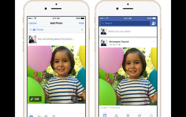 Ahora Facebook, una de las principales plataformas para compartir fotos, agregará el app "Live Photos" a sus apps para iPhones y iPads. Facebook lanzará el servicio a partir del lunes inicialmente a un número reducido de usuarios, aunque saldrá al público en general en las semanas próximas. La medida de Facebook se da poco después de una similar por parte de Tumblr, el servicio de fotos de Yahoo.Con el programa Live Photos en los teléfonos iPhone 6 y 6 Plus, cada foto viene acompañada de un video de tres segundos, sonido inclusive. Por ejemplo, uno puede tomar la foto de su hijo soplando las velas de la torta de cumpleaños, y al mismo tiempo tendrá también un video en que las velas se apagan y los invitados cantan "cumpleaños feliz".El teléfono automáticamente graba el video en el trasfondo cuando ese app está en funcionamiento. Si uno no hace más nada, la parte de video se borra. Cuando uno toma la foto, el teléfono registra un segundo y medio de video antes de ese instante y sigue grabando hasta que ruedan tres segundos en total.¿Y por qué no simplemente tomar un video? Porque a veces uno no sabe si un instante se presta más a una foto o a un video. Con Live Photos, siempre existe la opción del video, a menos que la opción esté apagada.Sin embargo, compartir estos videos hasta ahora estaba limitado a ciertos apps de Apple como el Messages, pero no el Mail.Gracias a las herramientas que Apple está facilitando a otras entidades, uno puede compartir contenidos mediante Facebook e incluso Tumblr. Sólo hay que tocar la foto y mantener el dedo allí para ver cómo la imagen se mueve. El iPhone 6 es necesario para crear Live Photos, pero también se pueden ver en iPhones y iPads más antiguos. Con los Android u otros navegadores de la red, sólo se ven las imágenes estáticas.Además de Facebook y Tumblr, Getty Images ofrecerá una selección de Live Photos mediante su app. Es una selección específica y no un mecanismo para compartir fotos con amigos.