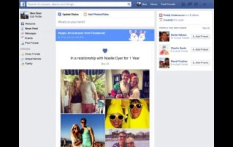 Tecnología | Muestra en tu muro el día de tu aniversario por medio de un resumen de imágenes Facebook añade función para parejas enamoradas Muestra en tu muro el día de tu aniversario por medio de un resumen de imágenes Por: SUN 24 de junio de 2014 - 10:18 hs La función ya está activa, pero por su naturaleza aparecerá cuando se cumpla un año en tu relación. ESPECIAL / CIUDAD DE MÉXICO (24/JUN/2014).- Los aniversarios son muy importantes para las parejas, sin embargo, suele pasar que uno de los dos pueda olvidar la fecha. Para ello, Facebook añadió una función en la que te muestra en tu muro el día de tu aniversario con esa persona especial por medio de un compendio de sus imágenes juntos. De acuerdo con el portal ABC.es, esta "historia de aniversario" se marcará desde el día que se hizo oficial la relación en su red social. Al desplegarse, éste se compone de un pequeño álbum de cinco fotografías de las dos personas (donde ambos estén etiquetados), así como ocurre cuando a fin de año se muestran tus momentos claves. Estas fotos especiales aparecerán en tu muro de manera privada, pero es posible cambiar su privacidad para que todos tus amigos en Facebook lo puedan ver. De la misma manera, si las capturas que la red social elige no son de tu agrado puedes editarlas por unas que pienses que son más correctas. La función ya está activa, pero por su naturaleza aparecerá cuando se cumplan un año en tu relación. Temas Internet Facebook Redes Sociales Pareja Lee También Alcalde de Tulum anuncia acceso libre a playas, pero sin alimentos ni bebidas ¿Cuál es la diferencia entre los celos y la enfermedad de celotipia? Internet Bienestar: Pasos para conservar tu número móvil Esta es la verdadera identidad del "Juan Gabriel" captado en París Recibe las últimas noticias en tu e-mail Todo lo que necesitas saber para comenzar tu día Registrarse implica aceptar los Términos y Condiciones
