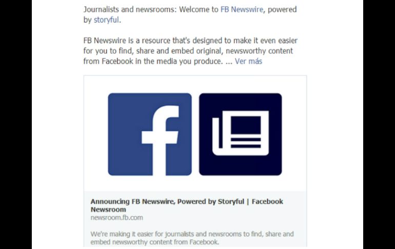 Tecnología | FB Newswire agrega contenido noticioso compartido públicamente en la red social Facebook lanza su agencia de noticias FB Newswire agrega contenido noticioso compartido públicamente en la red social Por: SUN 24 de abril de 2014 - 15:31 hs Es un recurso que hará más fácil para los periodistas y redacciones encontrar, compartir e integrar el contenido noticioso de Facebook. ESPECIAL / CIUDAD DE MÉXICO (24/ABR/2014).- Facebook lanzó este día FB Newswire, un recurso que hará más fácil para los periodistas y redacciones encontrar, compartir e integrar el contenido noticioso de Facebook en los medios de comunicación, explica la propia red. En su portal de prensa, se explica que el proyecto es desarrollado por Storyful, el líder en el descubrimiento de contenido social y de verificación de las salas de redacción. "FB Newswire agrega contenido noticioso compartido públicamente en Facebook por personas y organizaciones de todo el mundo para que los periodistas utilicen en sus reportes. Esto incluirá las fotos originales, videos y actualizaciones de estado enviados por personas en la primera línea de los grandes eventos, como protestas, las elecciones y los eventos deportivos". FB Newswire es accesible en Facebook en Facebook.com / FBNewswire y en Twitter en @FBNewswire, y se actualizará en tiempo real con el contenido relacionado con las principales noticias, se indica. "Los periodistas y medios de comunicación se han convertido en una parte integral de Facebook, esto es visible en las características como 'Trending Topics', las mejoras a las páginas, y los cambios recientes a News Feed. "Los editores están viendo los resultados de nuestro compromiso, el tráfico de referencia que va de Facebook a los sitios de medios creció cuatro veces en 2013, y estamos emocionados de profundizar nuestra relación con los medios de comunicación y periodistas en los días venideros", finaliza. Temas Internet Facebook Redes Sociales Lee También Bad Bunny permanece sentado durante "God Bless America" y enciende las redes Alcalde de Tulum anuncia acceso libre a playas, pero sin alimentos ni bebidas Internet Bienestar: Pasos para conservar tu número móvil Esta es la verdadera identidad del "Juan Gabriel" captado en París Recibe las últimas noticias en tu e-mail Todo lo que necesitas saber para comenzar tu día Registrarse implica aceptar los Términos y Condiciones