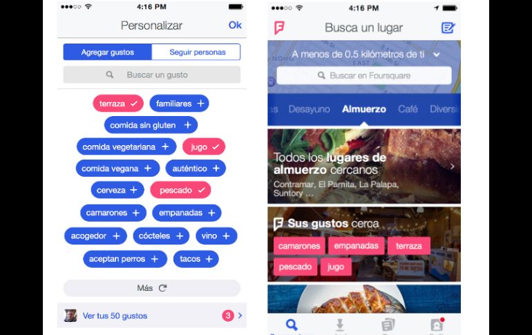 Tecnología | La renovada aplicación se centrará en ofrecer consejos para visitar lugares Foursquare retira los check-ins de su nueva versión La renovada aplicación se centrará en ofrecer consejos para visitar lugares de acuerdo al gusto del usuario Por: EL INFORMADOR 6 de agosto de 2014 - 15:14 hs GUADALAJARA, JALISCO (06/AGO/2014).- La aplicación que en el principio estaba enfocada a la localización ofrece una nueva versión donde la prioridad será ubicar lugares que concuerden con los gustos y las actividades de los usuarios. Foursquare dice adiós al check-in que popularizó hace cinco años para dar paso a una app que reúne las preferencias y ofrece consejos de consumo. A finales de julio se publicó el cambio de imagen que el servicio tendría para la versión 8.0.0 descargable desde este miércoles. Ahora, por medio de un comunicado, se anuncian los cambios que podrán observar las más de 50 millones de personas que tienen una cuenta en la app. "El nuevo Foursquare te libera de tener que leer largas opiniones aleatorias de personas que ni siquiera sabes si comparten tus gustos. Con Foursquare, descubre cosas en función de tus gustos, de los lugares que te gustan y de amigos y expertos de tu mayor confianza". La nueva interface funciona gracias a los gustos que el usuario guarda en su perfil. Por ejemplo, si una persona registra la palabra –o el concepto- "cupcake", el servicio ofrecerá una opción cercana para comprarlos e incluso relacionará el término con otros similares como "postres" o "pasteles", desplegando tips y si alguno de tus contactos ya estuvo ahí. "Ya van cinco años desde que creamos Foursquare, y pudimos concretar esta visión gracias a ti y a nuestra increíble comunidad, que han contribuido con seis mil millones de check-ins, 55 millones de tips, 65 millones de lugares, cientos de millones de fotos y miles de millones de relaciones sociales. Estamos muy orgullosos de lanzar la aplicación al mundo. Descárgala ahora mismo y descubre lugares que te encantarán", dice el comunicado. La aplicación alterna para hacer check-in, Swarm, seguirá funcionando –a pesar de las quejas de los usuarios-. En el rediseño de Foursquare determinar la ubicación y compartirla no será prioridad. "El mundo es un lugar hermoso, lleno de todo tipo de experiencias increíbles, y nuestros teléfonos deberían ayudarnos a descubrirlas". En números: Más de 50 millones de visitantes únicos cada mes a Foursquare.com. Más de 55 millones de consejos. Más de 300 millones de fotos. 60 millones de lugares en nuestra base de datos de lugares. Cerca de 10 mil gustos (Inglés solamente). Casi 1.9 millones de empresas utilizan Foursquare para conectarse con sus clientes. Más del 80 por ciento de los activos de check-in está usando Swarm. Cerca de 70 mil desarrolladores utilizan una de las API de Foursquare. Temas Internet Smartphones Redes Sociales Aplicaciones Lee También Los mejores MEMES sobre la caída masiva de Didi Didi se pronuncia sobre la caída de la app: ¿qué pasó con el servicio? Buen Fin 2025: Estas tiendas en línea y apps tendrán descuentos Restaurante "El Atracadero" reaparece en Veracruz tras viajar 300 km (VIDEO) Recibe las últimas noticias en tu e-mail Todo lo que necesitas saber para comenzar tu día Registrarse implica aceptar los Términos y Condiciones