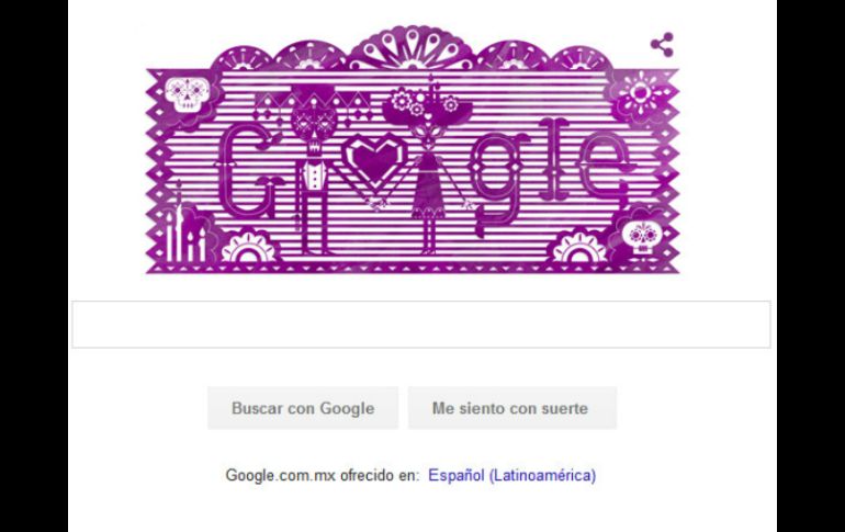 CIUDAD DE MÉXICO (02/NOV/2016).- El papel picado, representativo de la celebración del Día de Muertos en México, originario de San Salvador Huixcolotla, municipio en el estado de Puebla, es representado por Google en su página de inicio, con lo que celebra la llegada de los muertos al mundo de los vivos. Con los tradicionales tonos morados, la firma tecnológica representa a un par de calacas ataviadas con finas ropas, que tomadas de la mano cargan un corazón, entre representativas flores y velas se observa el nombre de la firma. De esta manera, la compañía fundada por Larry Page recuerda este miércoles con su 'doodle' a quienes ya dejaron el mundo de los vivos y les rinde un homenaje a los que su esencia todavía viven en los corazones de sus seres queridos. En México se conmemora a los difuntos adultos el 2 de noviembre, la tradición señala que vienen a visitar a sus familiares en la tierra, quienes los recuerdan con ofrendas en las que abundan los alimentos, bebidas y dulces que en vida disfrutaron. El papel picado es una artesanía ornamental de papel que se trabaja en México y sirve para decorar distintos tipos de festividades, en especial en Día de Muertos, debido a que dan color y vida a las ofrendas.