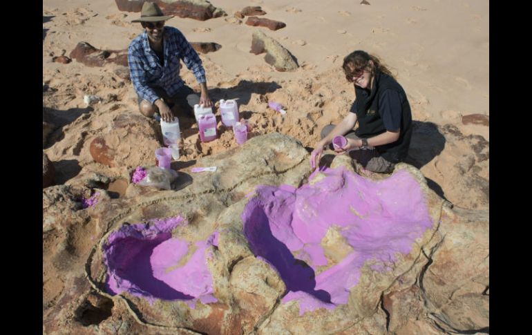 SÍDNEY, AUSTRALIA (27/MAR/2017).- Un grupo de científicos ha identificado 150 huellas de 21 especies de dinosaurio en un área del noroeste de Australia, anunció hoy la Universidad de Queensland, que dijo que se trata de un descubrimiento "sin precedentes".Las pisadas corresponden a 10 especies de la clase de los saurópsidos (4 de la infraorden ornithopoda), 6 de dinosaurios armadillos y 5 de dinosaurios depredadores, se detalla en una nota de prensa.La variedad de las marcas no tiene precedentes en el mundo, según el científico australiano Steve Salisbury, que dirige el estudio sobre el hallazgo publicado en Memoir of the Society of Vertebrate Paleontology 2016."Entre las huellas está la única prueba confirmada de un estegosauro en Australia. Además, hay algunas de los dinosaurios más grandes jamás registrados. Algunas de las huellas de los saurópodos tienen 1,7 metros de largo", precisó el biólogo y geólogo de la Universidad de Queensland en un comunicado.Salisbury señaló que el descubrimiento "es extremadamente importante porque supone el primer registro de dinosaurios no aviarios en la mitad occidental del continente y es la única huella de la fauna de dinosaurios de Australia durante la primera mitad del Cretáceo temprano".Las pisadas se encuentran en una zona rocosa, que tiene entre 127 y 140 millones de años de antigüedad, situada en Walmadany, una región del estado de Australia Occidental que contiene miles de huellas de dinosaurios y que fue incluida en el Patrimonio Nacional de Australia en 2011.Las 150 impresiones identificadas son más antiguas que la mayoría de los fósiles de dinosaurios descubiertos en la parte oriental de Australia y se calcula que tienen una antigüedad de entre 90 y 115 millones de años, según el comunicado de la Universidad de Queensland.El pueblo aborigen goolarabooloo, habitante tradicional de Walmadany, acudió a Salisbury y su equipo para que investigasen los rastros después de que el Gobierno hubiese seleccionado la zona para construir instalaciones de procesamiento de gas natural licuado.Las huellas de dinosaurios aparecen en las canciones de los goolarabooloo sobre el creador Marala, también conocido como hombre emu, quien entregó a este pueblo sus leyes.