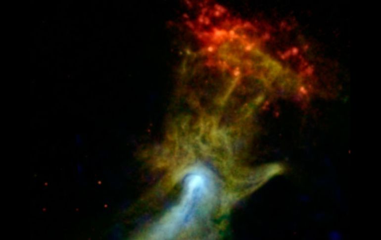 Tecnología | Astrónomos capturan con el telescopio NuSTAR imagen de una nebulosa que semeja una mano La NASA descubre 'La Mano de Dios' Astrónomos capturan con el telescopio NuSTAR imagen de una nebulosa que semeja una mano Por: NTX 10 de enero de 2014 - 14:59 hs La Mano es una nebulosa que se encuentra a 17 mil años luz de distancia de la Tierra. AFP / MIAMI, ESTADOS UNIDOS (10/ENE/2014).- Astrónomos estadounidenses capturaron una imagen con un telescopio de la NASA y la han llamado "La Mano de Dios". Sus dedos extendidos y el pulgar abierto son evidentes en la foto de rayos X captada por el telescopio NuSTAR de la Dirección de Aeronáutica y el Espacio (NASA). Se trata de una nebulosa originada por el material expulsado de una estrella que explotó y se convirtió en supernova. "La Mano es una nebulosa que se encuentra a 17 mil años luz de distancia de la Tierra", señaló la NASA. Los científicos de la NASA no están seguros de si el material expulsado de hecho ha tomado la forma de una mano o de si su interacción con las partículas del púlsar de una nebulosa de viento hace que se vea de esa forma. "No sabemos si la imagen de la mano es una ilusión óptica", dijo Hongjun An de la Universidad McGill en Montreal, Canadá, en un comunicado de la misión NuSTAR. El objeto fue descubierto en los años 80, pero es la primera vez que se logra una imagen de alta definición. Los cientificos de NuSTAR esperan que la imagen ayude a proporcionar más detalles sobre el fenómeno de los agujeros negros y la forma en que crecen e interactúan con las galaxias. Temas NASA Espacio Astronomía Lee También Estos son los nuevos datos revelados del cometa 3I/ATLAS ¿Cuál es la mejor hora para ver la lluvia de estrellas HOY en México? ¿Cuándo y cómo observar la próxima lluvia de estrellas en México? Lluvia de estrellas Dracónidas 2025: Fecha y horario para verla en su punto máximo Recibe las últimas noticias en tu e-mail Todo lo que necesitas saber para comenzar tu día Registrarse implica aceptar los Términos y Condiciones