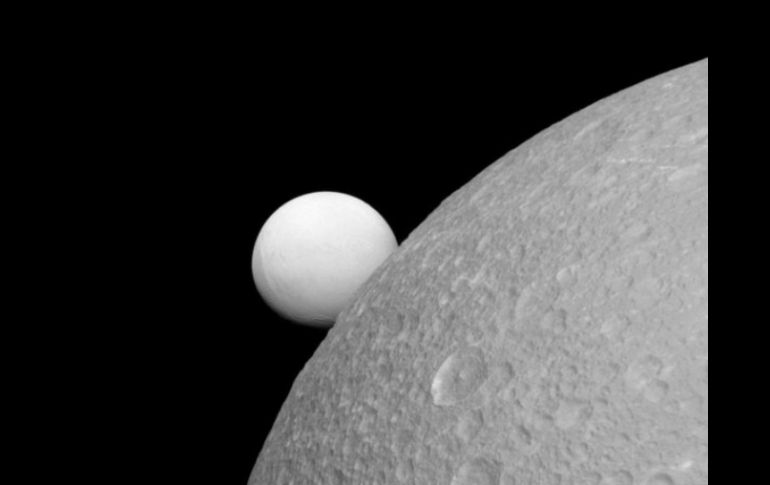 Tecnología | La imagen muestra a los satélites a una distancia aproximada de 83 mil kilómetros La NASA muestra imagen de las lunas de Saturno La imagen muestra a los satélites a una distancia aproximada de 83 mil kilómetros Por: SUN 17 de noviembre de 2015 - 12:22 hs Este satélite mide 504 kilómetros de diámetro y posee una superficie brillante y con nieve. TWITTER / @NASA CIUDAD DE MÉXICO (17/NOV/2015).- La nave espacial Cassini de la NASA capturó la imagen de dos de las lunas de Saturno: Dione y Encelado. La imagen tomada el pasado 8 de septiembre, muestra a los satélites a una distancia aproximada de 83 mil kilómetros. De acuerdo con el portal de la NASA, Dione y Encelado poseen casi los mismos materiales, sólo que Encelado refleja más por lo que parece brillar. Este satélite mide 504 kilómetros de diámetro y posee una superficie brillante y con nieve; en cambio, Dione tiene un superficie erosionada y mide mil 123 kilómetros de diámetro. Temas NASA Luna Astronomía Saturno Planetas Lee También Planetario Lunaria: Un viaje al universo desde Guadalajara ¿Cuál será el mejor horario para observar la lluvia de estrellas Oriónidas en México? NASA confirma si el cometa 31/ATLAS amenaza la vida en la Tierra o no Asteroide pasó muy cerca de la Tierra; esto ocurrió Recibe las últimas noticias en tu e-mail Todo lo que necesitas saber para comenzar tu día Registrarse implica aceptar los Términos y Condiciones