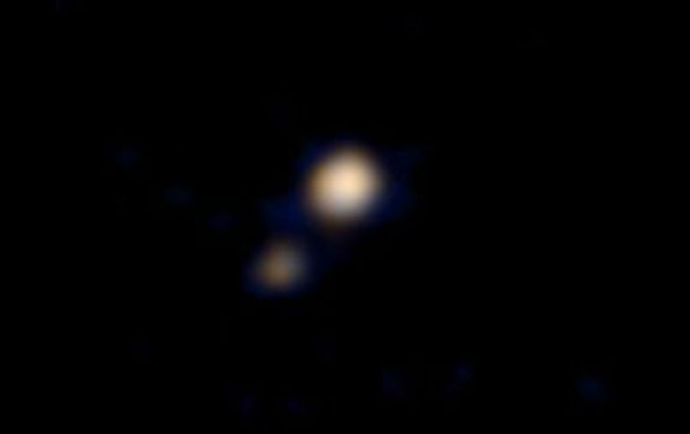 Tecnología | En la fotografía se ve el planeta y su luna más grande, Caronte La NASA publica la primera imagen en color de Plutón En la fotografía se ve el planeta y su luna más grande, Caronte Por: EFE 15 de abril de 2015 - 19:03 hs La fotografía revela que Caronte es más oscuro que Plutón. EFE / NASA WASHINGTON, ESTADOS UNIDOS (15/ABR/2015).- La Agencia Espacial Estadounidense ( NASA) publicó hoy la primera imagen en color de Plutón y su luna más grande, Caronte, obtenida por la sonda "New Horizons", que debería llegar al planeta enano el 14 de julio de este año. La imagen, tomada el 9 de abril desde una distancia de unos 115 millones de kilómetros ofrece una "prometedora ojeada de este sistema", dijo el director de Ciencia Planetaria en la NASA, Jim Green. La fotografía revela que Caronte es más oscuro que Plutón, un contraste que puede deberse a su diferente composición, o bien puede haber sido causada por una atmósfera previa y no vista de Caronte, explicó Green. Las preguntas que deja esta primera imagen deberían resolverse en pocos meses, cuando la sonda "New Horizons" llegue este verano a Plutón. La sonda, de 480 kilos, salió el 19 de enero de 2006 en un cohete Atlas V desde Cabo Cañaveral (Florida, EU) y deberá llegar a las proximidades del planeta enano y más alejado del Sol el 14 de julio de este año. Temas NASA Astronomía Planetas Lee También Planetario Lunaria: Un viaje al universo desde Guadalajara ¿Cuál será el mejor horario para observar la lluvia de estrellas Oriónidas en México? NASA confirma si el cometa 31/ATLAS amenaza la vida en la Tierra o no Asteroide pasó muy cerca de la Tierra; esto ocurrió Recibe las últimas noticias en tu e-mail Todo lo que necesitas saber para comenzar tu día Registrarse implica aceptar los Términos y Condiciones