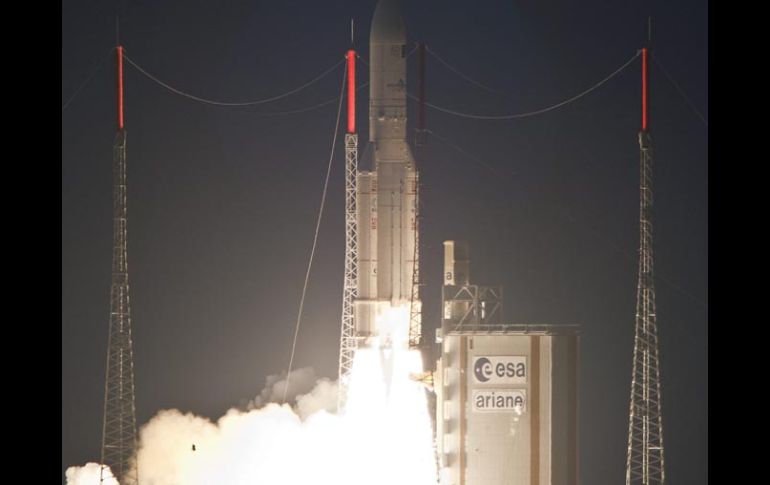 Tecnología | Luego de ser pospuesto, se podrán en óribita dos satélites Lanzado el cohete Ariane-5 La base de Kurú fue testigo del inicio del viaje del Ariane-5, que pondrá en órbita un satélite español y otro surcoreano Por: EFE 29 de diciembre de 2010 - 17:02 hs El Ariane-5 ascendió verticalmente durante doce segundos. EFE / PARÍS, ESTADOS UNIDOS (29/DIC/2010).- Un cohete Ariane-5 despegó hoy de la base de Kurú, en la Guayana francesa para poner en órbita el satélite de telecomunicaciones español Hispasat 1E y el surcoreano Koreasat 6. El lanzamiento empezó el vuelo a las 21.27 GMT (18.27 hora local de Kurú, 22.27 hora peninsular española), al inicio de la ventana temporal de tres cuartos de hora que se había fijado, sin que se viera afectado por ningún incidente. El martes, toda la operación tuvo que ser suspendida a pocos minutos del despegue por razones meteorológicas -fuertes vientos- y pospuesta 24 horas. El Ariane-5 ascendió verticalmente durante doce segundos, poco antes del inicio de las maniobras que conducían a la separación del Hispasat 1E al cabo de 27 minutos y 27 segundos y del Koreasat, poco más tarde. El del martes había sido el segundo retraso que sufría la misión, que inicialmente estaba previsto que se llevara a cabo el pasado día 21 pero, que fue aplazada para proceder a verificaciones suplementarias en el satélite surcoreano. La de hoy fue la sexta y última misión este año de las lanzaderas Ariane-5, en este caso con la doble carga del Hispasat 1E y del satélite de telecomunicaciones Koreasat 6. Los dos juntos suponían una masa al despegue de 8.170 kilos, de los cuales 5.296 correspondían al satélite español, que debe ser colocado en una órbita geoestacionaria a 30 grados de longitud oeste. Su misión durante la quincena de años de vida útil esperada es permitir que Hispasat disponga de capacidad adicional en órbita para ofrecer a sus clientes servicios como la televisión digital, los servicios de banda ancha para entornos móviles, terrestres y marítimos o la televisión de alta definición. La inversión del operador español, que encargó la fabricación de este satélite equipado con 53 repetidores de banda KU a Space Systems/Loral, es de más de 200 millones de euros. Se trata del sexto satélite español lanzado por cohetes del consorcio europeo Arianespace, que ya se ocupó de la puesta en órbita del Hispasat 1A en 1992 y del Hispasat 1B. El Hispasat 1E es el segundo de los cinco nuevos satélites previstos en el plan de expansión y crecimiento del operador español, que gracias a él ampliará su capacidad y cobertura en Europa, América y África, y espera "fortalecer su liderazgo y su proceso de internacionalización". Frente a su predecesor, el Hispasat 1D -en actividad desde 2002-, el nuevo ofrece un 89% más de transpondedores, un 120% más de potencia, un 60% más de masa de lanzamiento y una mayor cobertura sobre África y Oriente Medio. El Koreasat 6, por su parte, realizado por Thales Alenia Space, ofrecerá servicios de radiodifusión y de telecomunicaciones en toda Corea desde su posición orbital a 116 grados de longitud este. EFE Temas Lanzamientos Espaciales Astronomía Satélites Lee También ¿Cuál es la mejor hora para ver la lluvia de estrellas HOY en México? ¿Cuándo y cómo observar la próxima lluvia de estrellas en México? Lluvia de estrellas Dracónidas 2025: Fecha y horario para verla en su punto máximo En esta fecha podrás ver la superluna de la Cosecha desde México Recibe las últimas noticias en tu e-mail Todo lo que necesitas saber para comenzar tu día Registrarse implica aceptar los Términos y Condiciones