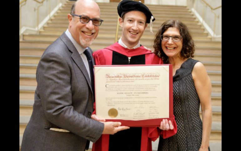 GUADALAJARA, JALISCO (25/MAY/2017).- La Universidad de Harvard entregó este jueves a Mark Zuckerberg un título universitario honorario, luego de que fue invitado para dar un discurso de graduación.El creador de Facebook fue admitido en Harvard en 2006, pero no terminó sus estudios ya que dejó la escuela para dedicarse por completo a trabajar con su red social, por lo que nunca recibió un título universitario.Esta semana, Zuckerberg estuvo de visita en su antigua escuela e incluso compartió un video desde la habitación que ocupó durante sus años de estudiante y donde comenzó la creación de la que ahora es una de las redes sociales más importantes del mundo. Su esposa, Priscilla Chan, que también acudía a Harvard, lo acompañó en el recorrido y compartió algunas de sus historias juntos.La transmisión de su discurso estará disponible en vivo a través de algunos medios internacionales, aunque no se ha precisado la hora exacta de inicio del mismo.