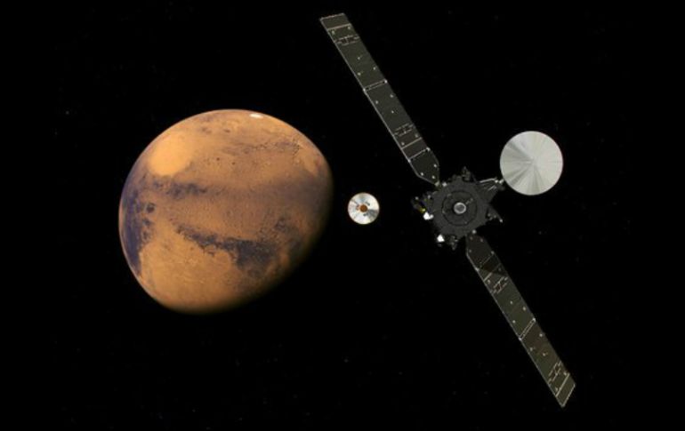 CIUDAD DE MÉXICO (11/OCT/2016).- El miércoles 19 de octubre, la misión ExoMars2016 entrará en la órbita de Marte y a su vez, el módulo Schiaparelli descenderá sobre la superficie del planeta rojo, informó este martes la NASA.ExoMars, misión conjunta de la Agencia Espacial Europea (ESA, por sus siglas en inglés) y la agencia espacial rusa Roscosmos, incluye el satélite para el estudio de Gases Traza (TGO) y el módulo demostrador de entrada, descenso y aterrizaje Schiaparelli.El satélite, cuyo objetivo es medir la dependencia geográfica y estacional del gas metano para determinar si procede de una fuente geológica o biológica, realizará un inventario detallado de los gases atmosféricos del planeta, indicó la NASA en su página de Internet.El TGO comenzará su misión científica a finales de 2017, luego de un año de complejas maniobras de aerofrenado para circularizar la órbita de Marte. También funcionará como aparato regulador de la corriente principal del circuito del vehículo ExoMars 2020 de la ESA.Schiaparelli se separará del TGO el 16 de octubre y entrará en la atmósfera para efectuar un descenso de seis minutos hasta la región de Meridiani Planum, el día 19 de octubre.De acuerdo con la Administración Nacional de la Aeronáutica y del Espacio (NASA), el módulo probará una serie de tecnologías que permitirán el descenso controlado y el aterrizaje en Marte como preparativo para futuras misiones, e incluye un escudo térmico, un paracaídas, un sistema de propulsión y una estructura deformable.También lo conforma un pequeño paquete científico que registrará la velocidad el viento, la humedad, la presión y la temperatura en el punto de aterrizaje, y obtendrá las primeras medidas de los campos eléctricos en la superficie del planeta.Estos datos podrían dar más información sobre el origen de las tormentas de arena en Marte, agregó la NASA.