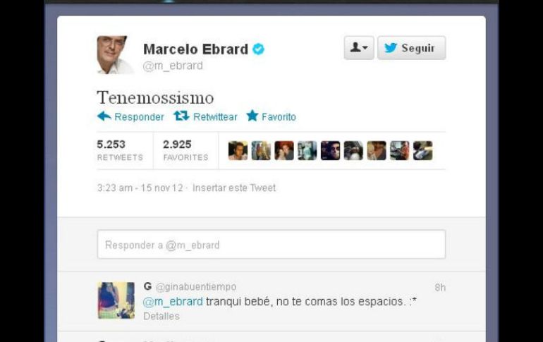 Tecnología | Un error al teclear, que se puede convertir en neologismo Nace una nueva palabra en redes: tenemossismo Un ''dedazo'' del jefe de Gobierno del Distrito Federal, derivó en burlas y el establecimiento de una nueva palabra el argot de las redes sociales Por: EL INFORMADOR 15 de noviembre de 2012 - 10:47 hs El mayor daño que parece reportarse por el sismo, es al lenguaje. ESPECIAL / GUADALAJARA, JALISCO (15/NOV/2012).- Un "dedazo" del jefe de Gobierno del Distrito Federal, Marcelo Ebrard, derivó en burlas y el establecimiento de una nueva palabra el argot de las redes sociales: "tenemossismo". Fue a las 3:23 de la madrugada cuando el mandatario saliente tuiteó las dos palabras sin usar el espacio correspondiente entre ambas. En las primeras horas del día, ese tuit acumula más de cinco mil retuits y se usa como hashtag (#tenemossismo) para ligar los mensajes al respecto. En redes ya circulan imágenes alusivas al neologismo entre las que destacan las modificaciones a la conocida frase "Keep calm and carry on" (Mantenga la calma y siga adelante) y que se pueden apreciar en nuestro blog de ALLÁ EN LA RED. En general los usuarios toman con mucho humor el evidente error de dedo del político y algunos hacen un llamado a que esta palabra quede establecida como el llamado de alerta oficial ante próximos movimientos telúricos. Marcelo Ebrard dejará el cargo el próximo 4 de diciembre, ante esto algunos otros usuarios se lamentan y ya anticipan que extrañaran este tipo de mensajes del jefe de Gobierno. TUIT https://twitter.com/m_ebrard/status/269007677412212737 SIGA EL FENÓMENO https://twitter.com/search?q=%23tenemossismo&src=typd BLOG http://opinion.informador.com.mx/allaenlared/2012/11/15/tenemossismo/ EL INFORMADOR / SERGIO RODRÍGUEZ Temas Internet Sismos Marcelo Ebrard Twitter Redes Sociales Lee También Bad Bunny permanece sentado durante "God Bless America" y enciende las redes Alcalde de Tulum anuncia acceso libre a playas, pero sin alimentos ni bebidas Terremoto de magnitud 7.6 sacude el sur de Filipinas Internet Bienestar: Pasos para conservar tu número móvil Recibe las últimas noticias en tu e-mail Todo lo que necesitas saber para comenzar tu día Registrarse implica aceptar los Términos y Condiciones