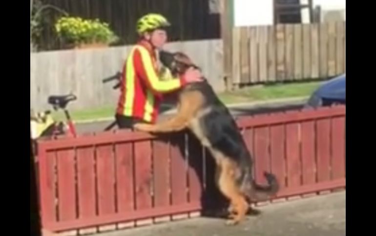 GUADALAJARA, JALISCO (05/AGO/2016).- Michael Collins publicó en su cuenta de Facebook un video en el que muestra a su perro, de raza pastor alemán, en una actitud muy cariñosa al momento en el que el cartero llega a su domicilio a entregar la correspondencia.Todo sucede en la localidad neozelandesa de Tauranga y se ha convertido en un fenómeno en las redes sociales por exhibir al cachorro de nueve meses en una reacción inesperada.A pesar de la creencia que exististe sobre los perros guardianes, donde la protección, bravura y territorialidad son la constante, el can da una lección de fraternidad al acercarse al trabajador de correos para juguetear unos instantes con él.El hombre corresponde a la bienvenida de la mascota y comienza a acariciarlo por unos segundos para luego continuar con su jornada cotidiana.Collins anexó un mensaje al video asegurando que todos los días, haya correo para él o no, el cartero se aproxima al jardín de su entrada para tener el encuentro con el mejor amigo del hombre. Al mismo tiempo agradeció su ''esfuerzo'' por bajarse de su bicicleta y tener esa atención con su cachorro cada día.Hasta el momento, el video cuenta con poco más de cuatro millones de reproducciones. EL INFORMADOR / ÓSCAR ÁLVAREZ