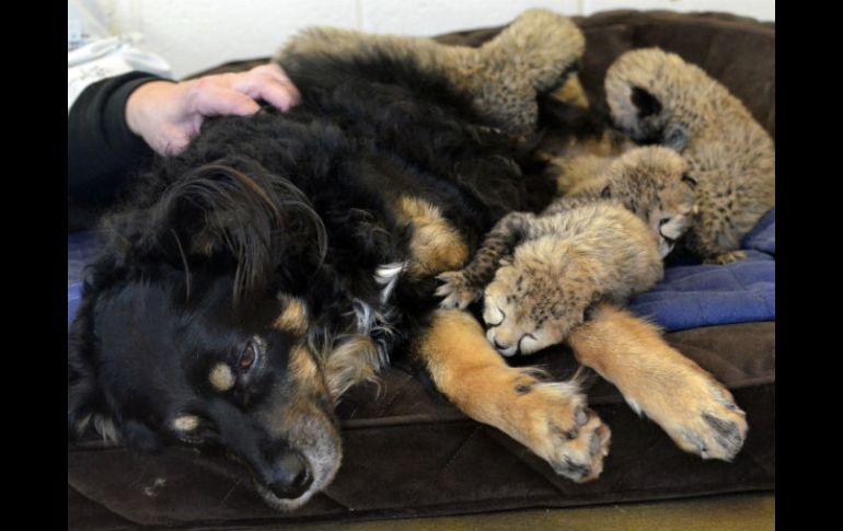 Tecnología | 'Blakely' tiene la tarea de acurrucar a los cachorros en el Zoológico de Cincinnati Perro 'niñero' acompaña a guepardos recién nacidos 'Blakely' tiene la tarea de acurrucar a los cachorros y dejarlos que se suban sobre su cuerpo Por: EL INFORMADOR 22 de marzo de 2016 - 19:06 hs GUADALAJARA, JALISCO (22/MAR/2016).- Luego de que cinco guepardos quedaron huérfanos en el Zoológico de Cincinnati, un perro es el encargado de acompañarlos y fungir como su "niñero". El pastor ovejero australiano llamado ''Blakely'' tiene la tarea de acurrucar a los cachorros y dejarlos que se suban sobre su cuerpo, lo cual ayuda a que hagan ejercicio y contribuye a su desarrollo, según informó el zoológico ubicado en el estado de Ohio. Las crías nacieron el pasado 8 de marzo a través de una inusual cesárea. Pero su madre "Willow", de 5 años, no se recuperó de la cirugía y falleció. Los guepardos bebés, tres varones y dos hembras, reciben cuidados especiales pues nacieron prematuramente. ''Blakely'' es un acompañante del zoológico que ya ha ayudado con otros cachorros. Temas Perro Animales Curiosidades Lee También Horóscopo vespertino: ¿Cuáles serán los mayores retos para cada signo este 13 de octubre? Viral: Perro lucha por su vida en inundación en Veracruz (VIDEO) Detalles sobre la esquizofrenia, la experiencia de "voces" internas ¿Cuáles son los beneficios de tomar jugo de betabel y cómo se prepara? Recibe las últimas noticias en tu e-mail Todo lo que necesitas saber para comenzar tu día Registrarse implica aceptar los Términos y Condiciones