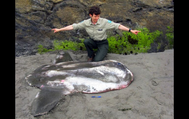 Tecnología | Se calcula que pesaba unos 150 kilos Pez luna llega a costa de Washington Se calcula que pesaba unos 150 kilos Por: AP 5 de septiembre de 2014 - 20:29 hs La bióloga June Mohler afirma que el pez fue encontrado muerto el pasado 27 de agosto. AP / WASHINGTON, ESTADOS UNIDOS (05/SEP/2014).- Un pez luna de alrededor de 2.13 metros llegó a la costa de Washington del parque estatal Cape Disappointment, cerca de la desembocadura del río Columbia. Fue hallado muerto en la playa durante la marea baja del 27 de agosto por unos niños que acampaban en el lugar, dijo la bióloga June Mohler, quien trabaja temporalmente en el parque como guía. "Es un pez realmente extraño", dijo. Su altura era de alrededor de 2,08 metros. "Yo lo reconocí", dijo Mohler. El pez luna (Mola mola) "es raro en la zona. Son más comunes en aguas cálidas". Mohler calculó que pesaba unos 150 kilos. La causa de muerte no estaba a la vista. A los pocos días, se lo llevaron las olas de vuelta al mar, dijo la bióloga. Temas Ciencia Animales Biología Recibe las últimas noticias en tu e-mail Todo lo que necesitas saber para comenzar tu día Registrarse implica aceptar los Términos y Condiciones