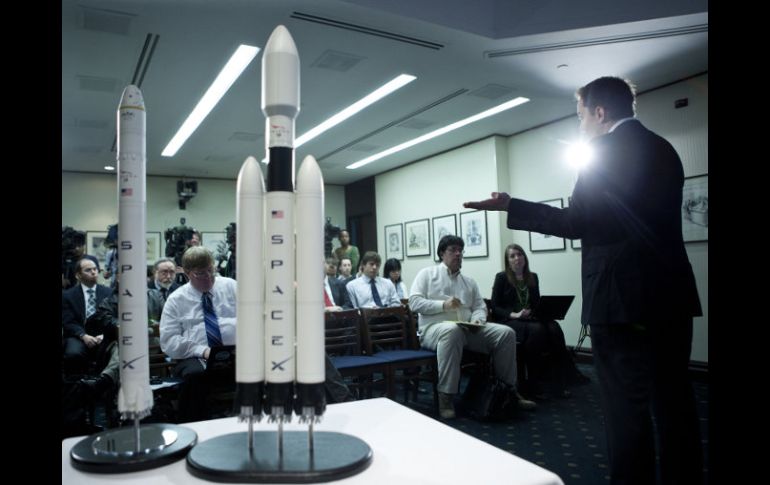 Tecnología | Esperan hacer vuelo de prueba del Falcon Heavy a fines de 2012 Presentan cohete espacial que puede llegar hasta Marte El Falcon Heavy se compone de tres núcleos de nueve motores y tiene una capacidad de 53 toneladas Por: EFE 5 de abril de 2011 - 18:22 hs Elon Musk hace la presentación del cohete junto a un modelo a escala. AFP / WASHINGTON, ESTADOS UNIDOS (05/ABR/2011).- La compañía dedicada al desarrollo de tecnología espacial SpaceX presentó hoy un potente cohete con gran capacidad de carga que puede llegar hasta Marte, indicó su consejero delegado, Elon Musk. "Falcon Heavy transportará más carga en la órbita o más rápido que cualquier vehículo en la historia, excepto el cohete lunar Saturno V, que fue dado de baja después de que el programa Apolo", señaló Musk en una conferencia de prensa. Musk afirmó que este nuevo cohete espacial "abre un nuevo mundo de capacidad de Gobierno y misiones comerciales en el espacio", sobre todo después de que la NASA concluya su programa de transbordadores este año, con los que ha llevado carga y tripulación hasta la Estación Espacial Internacional (EEI) durante 30 años. El Gobierno estadounidense ha hecho especial hincapié en asociarse con la empresa privada para desarrollar la tecnología necesaria para emprender una nueva conquista espacial, que tiene como objetivo llegar a un asteroide en 2025 y a Marte en 2030. De momento, no hay ninguna oferta formal que se pueda desvelar, pero Musk aseguró que "ha habido un gran interés en el Gobierno estadounidense". El Falcon Heavy llegará a la base de Vandenberg, en California, donde la compañía tiene un complejo de lanzamiento, a finales de año que viene y tienen previsto hacer un vuelo de prueba "poco después", en noviembre o diciembre. "Nuestro primer lanzamiento desde la base de lanzamiento de SpaceX a Cabo Cañaveral, en Florida (sudeste), está programado para fines de 2013 ó 2014", agregó. El Falcon Heavy se compone de tres núcleos de nueve motores, que se utilizan como primera etapa y tiene una capacidad de 53 toneladas, una cifra que supera la carga máxima de un avión Boeing 737-200 con 136 pasajeros. Estará propulsado por motores Merlín modificados que la compañía está probando en el centro de desarrollo de cohetes que SpaceX tiene en McGregor , en Texas. SpaceX, con sede en California, fue fundada en 2002. Temas Naves espaciales Espacio Astronomía Recibe las últimas noticias en tu e-mail Todo lo que necesitas saber para comenzar tu día Registrarse implica aceptar los Términos y Condiciones