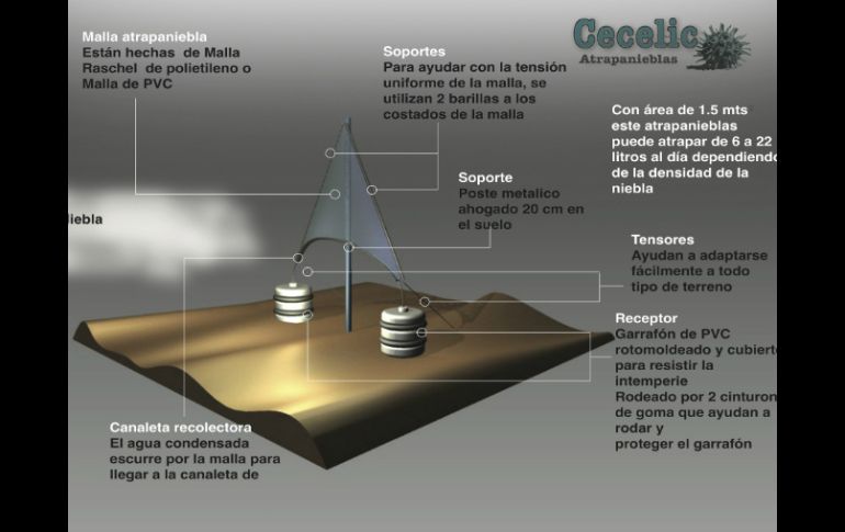 “Se puede llegar a recolectar de seis a 22 litros de agua al día, depende de la densidad de la niebla, son cifras que se han comprobado ya en Chile, y tomando como base un metro cuadrado de malla además de depender dónde se instale y cuánta niebla exista”, precisó la estudiante.