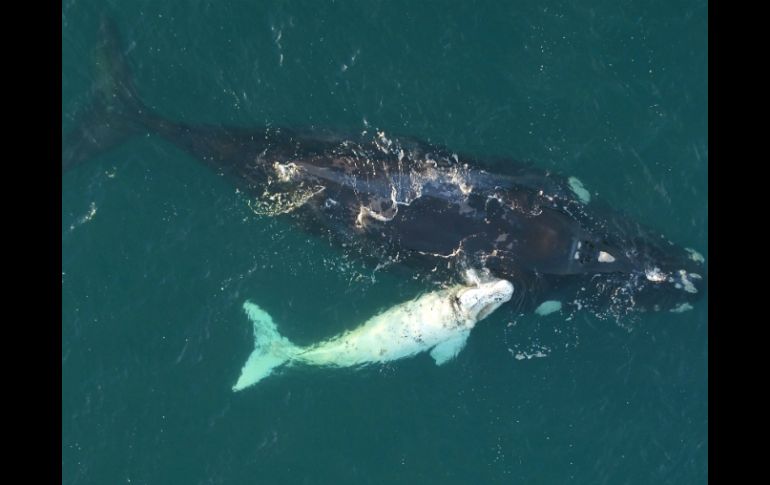 SÍDNEY, AUSTRALIA (06/SEP/2016).- Los científicos lograron captar a lo largo de la costa de Australia, gracias a un dron, espectaculares imágenes de una ballena austral nadando al lado de su pequeño, un ballenato cuyo color blanco es sumamente raro.Los investigadores hallaron a ambos cetáceos cuando efectuaban un censo aéreo de la población de ballenas francas australes, frente a las costas del estado de Australia Occidental."Los drones permiten, sin molestarlas, tomar medidas de la talla y constatar el estado de las ballenas francas australes", declaró Fredrik Christiansen, de la Unidad de Investigación sobre Cetáceos de la Universidad Murdoch (Mucru) de Perth.La ballena franca austral no está considerada como una especie amenazada. Su población se ha reconstituido tras haber sido diezmada el siglo pasado, durante las campañas de caza.Pero su número es no obstante limitado. En las aguas australianas hay solamente unos tres mil individuos.El ballenato blanco es aún más raro, ya que solamente el cinco por ciento de los pequeños nacen con este sorprendente color, antes de mudar hacia el gris durante su primer año.