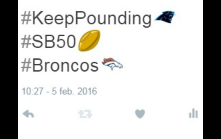 Tecnología | Con 'emojis' Twitter y Vine se incluyen a la experiencia de este 7 de febrero Redes sociales se unen al Super Bowl 50 Con 'emojis' Twitter y Vine se incluyen a la experiencia de este 7 de febrero Por: SUN 5 de febrero de 2016 - 10:44 hs Con estas etiquetas podrás hablar del gran juego y además tener tu emoji. ESPECIAL / Twitter SANTA CLARA, CALIFORNIA (05/FEB/2016).- Uno de los eventos deportivos de mayor expectativa año por año encenderá las redes sociales. La NFL celebrará este 7 de febrero el Super Bowl 50 y Twitter decidió unirse a la fiesta con tres distintos emojis del Panteras vs. Broncos. “La mejor y más rápida manera de unirte a la conversación en tiempo real sobre Super Bowl y conectarte directamente con los equipos y aficionados es Twittear y hacer búsquedas con #SB50. Para ayudar a promover los Tweets sobre Super Bowl, Twitter y NFL se juntaron para crear Emojis especiales de #SB50. Los aficionados podrán tuitear con las etiquetas #SB50, #Broncos, #KeepPounding para dar más color a los mensajes sobre Super Bowl”, anunció la agencia Ogilvy Public Relations. De igual modo, las redes sociales estarán en fuego el día del Super Bowl con otras plataformas como Vine y Periscope, donde se podrán disfrutar de materiales multimedia desde el Levi's Stadium, en San Francisco. “También puedes sintonizar Vine el día del partido, a través del canal Super Bowl. Los aficionados verán Vines desde la cancha, así como mensajes de Viners y aficionados de todo el mundo. Etiqueta tus Vines con #SB50 y/o #superbowl y podrás verlos incluidos en esta experiencia. Periscope también participará en el partido al permitir que etiquetas populares disparan una serie de corazones temáticos de #SB50. Estos van a flotar en la parte superior de la pantalla al lado de los corazones tradicionales de Periscope y se activarán cuando se incluye cualquiera de estas etiquetas en el título de la transmisión”, explica. Temas Internet Twitter Redes Sociales Super Bowl 50 Lee También Lolita Cortés confiesa si volvería a criticar a Yuridia por su carrera en la actualidad Spotify: mejora la calidad de sonido GRATIS de esta forma ¿Cuál era la relación entre el barco pirata hundido en Vallarta y Colón? ¿Qué hundió al barco pirata "Marigalante" en Vallarta? Recibe las últimas noticias en tu e-mail Todo lo que necesitas saber para comenzar tu día Registrarse implica aceptar los Términos y Condiciones