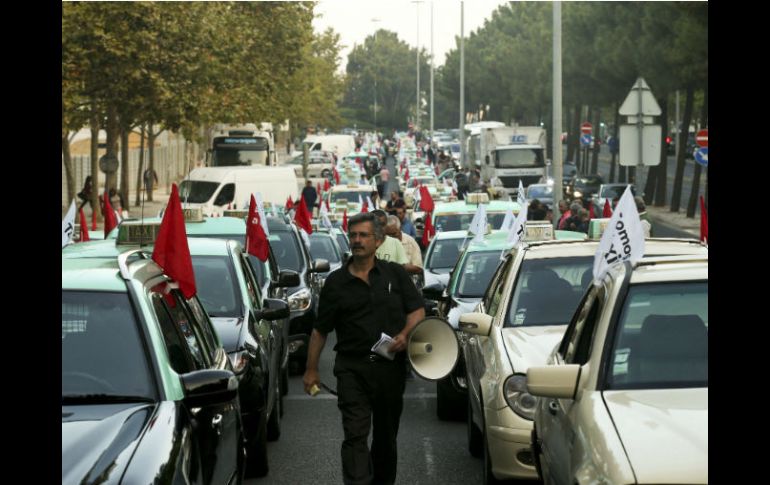 LISBOA, PORTUGAL (10/OCT/2016).- Cientos de taxis comenzaron hoy a marchar contra la anunciada legalización de plataformas de transporte como Uber por el centro de Lisboa, donde están acompañados por varios colegas españoles y vigilados por un amplio despliegue policial.Con algo de retraso sobre el horario previsto, la manifestación arrancó alrededor de las 09:00 hora local (08:00 GMT) del Parque de las Naciones de Lisboa en silencio y de forma ordenada.La caravana incluye varios vehículos que portan la bandera de España, desde donde se han desplazado en solidaridad con sus colegas lusos representantes del sector en Madrid (Fedetaxi) y Barcelona (STAC). El presidente de Fedetaxi, Miguel Ángel Leal, que participa en la marcha, subrayó en su cuenta de Twitter que los taxistas no van a "permitir" que "plataformas de falsa economía productiva" les "arruinen", en alusión a la estadounidense Uber o la española Cabify.La marcha, que tiene previsto concluir en la sede del Parlamento luso, se ha dirigido en primer lugar al aeropuerto, que alrededor de las 10:00 hora local (09:00 GMT) ya estaba abarrotado de vehículos.Allí se han visto las primeras escenas de tensión entre los asistentes, que han mantenido acaloradas discusiones y algún enfrentamiento que no ha pasado a mayores.Los taxistas lusos protestan por la normativa que el Gobierno espera aprobar este mes para legalizar la actividad de estas plataformas, que pasarán a ser consideradas "prestadoras de servicios de tecnología".Esto implica que, sin contar con los beneficios fiscales a los que tienen acceso los taxistas, podrán operar con permiso previo del regulador de transportes, además de que estarán obligados a tener sede o representante legal en Portugal y emitir factura electrónica.Respecto a la movilización de hoy, el primer ministro luso, el socialista António Costa, dijo desde China, donde realiza un viaje oficial, que espera que esta "legítima" protesta se desarrolle "con total normalidad y serenidad" y defendió la acción del Ejecutivo."Lo que estamos haciendo es regular ese mercado", sostuvo ante medios portugueses.