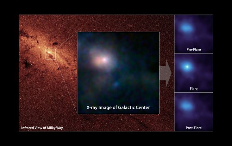 Tecnología | La imagen de la masa llamada Sagitario A fue tomada en luz infraroja Telescopio NuSTAR observa un agujero negro gigante en el centro de la galaxia La imagen de la masa llamada Sagitario A fue tomada en luz infraroja Por: EFE 23 de octubre de 2012 - 19:25 hs La imagen de la masa llamada Sagitario A fue tomada en luz infraroja. EFE / WASHINGTON, ESTADOS UNIDOS (23/OCT/2012).- El telescopio Nuclear Epectroscópico, o NuSTAR, por su sigla en inglés, ha realizado su primera observación para la NASA: un gigantesco agujero negro situado en el centro de nuestra galaxia. Las observaciones de NuSTAR muestran que se trata de un agujero negro que se encuentra en el medio de una etapa de actividad, que ha sorprendido a los investigadores de la NASA y que servirá para arrojar luz sobre este fenómeno. "Tenemos la suerte de haber capturado una explosión de un agujero negro durante nuestra campaña de observación", señaló Fiona Harrison, investigadora principal de la misión en el Instituto de Tecnología de California en Pasadena. "Estos datos nos ayudarán a entender mejor a este gigante que está en el centro de nuestra galaxia y por qué a veces su actividad se recrudece durante unas horas y luego vuelve a dormir", explicó en un comunicado. La imagen tomada en luz infrarroja, muestra la ubicación del agujero negro gigantesco en nuestra Vía Láctea, llamado Sagitario A. NuSTAR es el único telescopio capaz de producir imágenes enfocadas de rayos X de alta energía, lo que da a los astrónomos una nueva herramienta para sondear objetos como los agujeros negros. Lanzado el pasado 13 de junio, durante los próximos dos años NuSTAR buscará gigantescos agujeros negros y otros fenómenos en la Vía Láctea y en otras galaxias. Su meta científica es una observación profunda del espacio en busca de agujeros negros miles de millones más grandes que el Sol y un entendimiento mejor de la forma en que las partículas se aceleran en las galaxias activas. Temas Descubrimientos Telescopios Astronomía Agujero negro Lee También ¿Cuál es la mejor hora para ver la lluvia de estrellas HOY en México? Horóscopo Negro para HOY 8 de octubre ¿Cuándo y cómo observar la próxima lluvia de estrellas en México? Horóscopo Negro para HOY 7 de octubre Recibe las últimas noticias en tu e-mail Todo lo que necesitas saber para comenzar tu día Registrarse implica aceptar los Términos y Condiciones