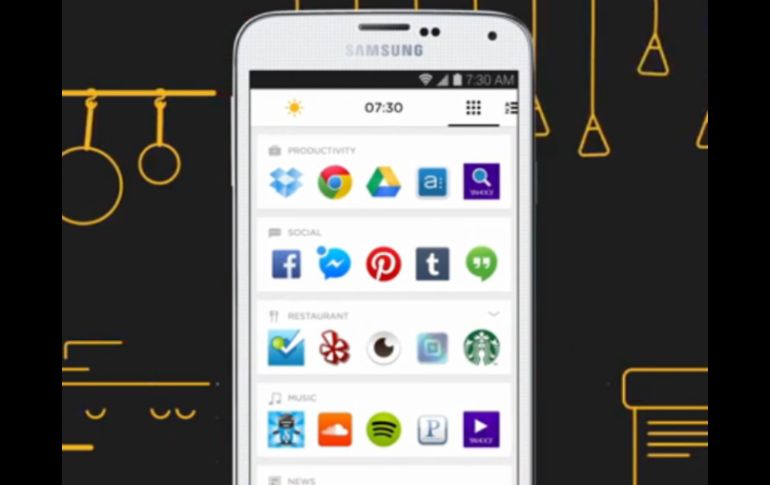 Tecnología | El objetivo de la aplicación es organizar la pantalla del teléfono Yahoo Aviate, una pantalla de inicio diferente para Android El objetivo de la aplicación es organizar la pantalla del teléfono, lograr un aspecto y una mejor distribución Por: EFE 24 de junio de 2014 - 20:41 hs MADRID, ESPAÑA (24/JUN/2014).- La aplicación Yahoo Aviate, que personaliza la pantalla de inicio de los dispositivos Android y ofrece al usuario información relevante en función del contexto y los hábitos, ya está disponible en inglés en todo el mundo. El objetivo de la aplicación es organizar la pantalla del teléfono y lograr un aspecto y una distribución más sencillos y simples, ha informado hoy Yahoo. Yahoo Aviate ofrece además al usuario, de forma anticipada, información útil en función del momento del día y el lugar en el que se encuentre: de viaje, en el trabajo, en casa, etcétera. Por ejemplo, sugiere al usuario que se vista para un día lluvioso, le avisa de que hay atascos o le aconseja escribir un correo electrónico a las personas de una reunión a la que se llega tarde. También aglutina la alarma, el calendario y, dos veces al día, muestra un resumen de noticias. Asimismo, detecta de forma automática los contactos favoritos de un usuario y crea una lista para hacer más sencillo comunicarse con ellos mediante llamadas o mensajes. Yahoo adquirió la aplicación Aviate -que llevaba unos meses activa en fase beta para usuarios con aplicación- el pasado enero y hoy ha lanzado su versión oficial para los móviles Android. Temas Gadgets Yahoo Android Aplicaciones Recibe las últimas noticias en tu e-mail Todo lo que necesitas saber para comenzar tu día Registrarse implica aceptar los Términos y Condiciones