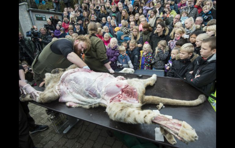 Tecnología | Unas cuatrocientas personas, entre ellos muchos escolares, presenciaron la práctica Zoológico danés disecciona un león en público pese a protestas Unas cuatrocientas personas, entre ellos muchos escolares, presenciaron la práctica Por: EFE 15 de octubre de 2015 - 11:24 hs La experiencia permite al público ver de cerca los órganos de un mamífero parecido al hombre, menciona especialista. EFE / C. Fisker COPENHAGUE, DINAMARCA (15/OCT/2015).- El zoológico de Odense (centro de Dinamarca) diseccionó ante el público un león sacrificado hace meses pese a una campaña internacional en contra que había recogido cerca de 130 mil firmas. Unas cuatrocientas personas, entre ellos muchos escolares que aprovecharon las vacaciones de otoño en Dinamarca, acudieron a presenciar una práctica común en los zoos daneses y que la dirección del centro decidió mantener apelando a fines didácticos. "Lo hacemos porque forma parte de un gran paquete de difusión de conocimientos. Ver a un animal muerto es algo grande para todos", declaró a la televisión pública "DR" Nina Collatz Christensen, zoóloga de este centro. Christensen resaltó que la experiencia permite al público ver de cerca los órganos de un mamífero parecido al hombre y proporciona una relación distinta con los animales a la normal. "En un supermercado no se ven cerdos ni terneros, sólo un paquete de carne picada. Así se tiene una mejor comprensión de la vida y la muerte de los animales", afirmó. El zoo de Copenhague fue objeto de una polémica con repercusión mundial hace un año y medio, con amenazas de muerte a su director incluidas, tras anunciar el sacrificio de una jirafa para evitar problemas de consanguinidad y su posterior disección pública. En este caso se trata de un león y sus dos hermanos, nacidos el verano pasado y que fueron sacrificados en febrero para reducir la población y ante el riesgo de endogamia, después de que no se encontrara ningún otro zoo en Europa que pudiera acogerlos. Al igual que en otros zoológicos en Dinamarca las disecciones públicas son práctica normal en el de Odense, que este año lo ha hecho con un camello y un poni y quiere repetir la experiencia con los otros dos leones cuyos cadáveres permanecen congelados. Las reacciones en contra proceden fundamentalmente de fuera de Dinamarca, donde no ha habida grandes críticas y donde la principal asociación de protección de los animales ha invitado por ejemplo a criticar en su lugar las condiciones en que viven los cerdos y pollos que luego son sacrificados para convertirse en alimentos. Temas Medio Ambiente Ciencia médica Animales Dinamarca Lee También Estudio chino revela una mutación que eleva riesgo de alzhéimer ¿Cuántas especies habitan en el Bosque de los Colomos? ¿Cómo se forman los recuerdos en la mente? Julieta Fierro será homenajeada en la FIL Recibe las últimas noticias en tu e-mail Todo lo que necesitas saber para comenzar tu día Registrarse implica aceptar los Términos y Condiciones