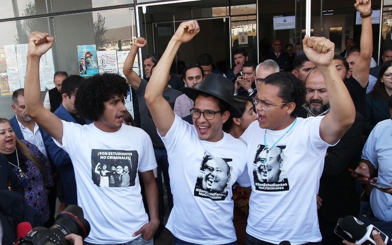 Tras las presiones de organizaciones civiles, autoridades y políticos, ayer salieron de la cárcel los tres universitarios Javier Armenta, Iván Ilich Cisneros y José Rojas, acusados por el “despojo” de un predio en Huentitán donde se construye un complejo inmobiliario. Luego de seis días en prisión preventiva, dejaron Puente Grande y agradecieron a toda la población que los apoyó, pero fueron vinculados y seguirán el proceso en libertad. Deben sujetarse a la medida cautelar para la firma periódica y no acercarse al predio en conflicto.“No nos liberó el Estado, nos liberó la gente que luchó en la calle, que alzó la voz… estoy muy agradecido”, expresó Javier Armenta, exlíder de la Federación de Estudiantes Universitarios (FEU), quien aseguró que no se emitirá ninguna disculpa pública a la empresa que los denunció, reconociendo que la protesta en el predio había sido un error. “Pero bajo ninguna circunstancia es un error defender lo que el Gobierno no defiende”. El rector Ricardo Villanueva apuntó que esta acción representa el fruto de la lucha y resistencia por parte de la comunidad estudiantil, así como las organizaciones civiles, partidos políticos y la sociedad en general que se sumaron a la causa. “No hay nada que festejar porque esto nunca debió de suceder, pero de corazón, gracias. Viví un momento de frustración de no creer el nivel tan bajo de la política en Jalisco. Debemos estar alertas porque esto fue un mensaje político a la UdeG y a los activistas. Fue algo que el gobernador nunca debió hacer y hasta que no se nos regrese la tranquilidad y que venga la concordia y acuerdos en Jalisco, pido que no levantemos el Estado de emergencia”.Según el abogado de la UdeG, Juan Carlos Guerrero, se apelará la vinculación a proceso determinada por el juez Felipe de Jesús Rivera y se interpondrá una queja ante el Consejo de la Judicatura porque “este encarcelamiento fue mandado desde Casa Jalisco”.Luego de que los tres jóvenes universitarios, Javier Armenta, Iván Ilich Cisneros y José Rojas Umanzor quedaran libres y ahora enfrenten su proceso penal fuera de prisión, el rector de la Universidad de Guadalajara (UdeG), Ricardo Villanueva, informó que el campamento instalado afuera de Casa Jalisco a manera de presión será retirado. “Inmediatamente se retira el plantón. Lo que exigimos era su libertad para llevar un proceso y sí se logró. Era el único requisito que nosotros teníamos para retirarnos de Casa Jalisco y nos vamos el día de hoy”, dijo el rector al salir de la audiencia. De inmediato, tanto el rector, como los jóvenes y funcionariado que acudió a Puente Grande, se dirigieron a Casa Jalisco para dar término a la sesión del Consejo General Universitario iniciada esta mañana a las 8:00 horas, tras haber sido pausada el pasado viernes para analizar las acciones a emprender en el caso. “¡Aquí está su manada!” se escuchó entre aplausos, porras y música cuando llegaron al campamento. Pese a que las casas de campaña y toldos fueron retirados, Villanueva Lomelí aseveró que el Estado de emergencia de la UdeG se mantendrá, pues “esto seguirá generando suspicacia e incertidumbre”. “Yo viví un momento de frustración de no creer el nivel tan bajo de la política en Jalisco. Debemos estar alertas porque esto fue un mensaje político a la UdeG y a los activistas. Esto rebasó todas las barreras de lo permitido. Fue algo que el gobernador nunca debió hacer y hasta que no se nos regrese la tranquilidad y que venga la concordia y acuerdos en Jalisco”, señaló el rector durante su intervención. Los tres jóvenes agradecieron a la comunidad estudiantil que les estuvo apoyando, incluyendo no sólo al alumnado, sino también al personal docente y académico y sin dejar de lado a la sociedad civil organizada, pues dijeron, fueron parte fundamental de la lucha. Por su parte, el abogado general de la UdeG, Juan Carlos Guerrero, recordó que el juez consideró la detención preventiva oficiosa al estimar que los jóvenes portaron armas durante sus protestas, lo que fue señalado por cinco testigos de la parte acusadora que no estuvieron presentes en el momento en el que se había cometido el presunto delito. Además, detalló que un guardia que estuvo presente durante el desalojo del campamento mencionó que los estudiantes no contaban con las armas que mencionan los MP. “Ese señor, con altísimo valor civil, fue y declaró que era falso que los estudiantes estuvieran armados. Esa declaración de ese ciudadano valiente ayudó a que se desestimaran los testimonios fabricados por la Fiscalía del Estado el día del evento”, dijo Guerrero Fausto. El presidente del partido Hagamos, Ernesto Gutiérrez Guízar, lamentó la determinación del juez Felipe de Jesús Rivera Gallegos de vincular a proceso a tres estudiantes universitarios que, a pesar de llevar su proceso en libertad, están imputados por supuesto despojo, pero criminalizados por manifestarse pacíficamente y defender un parque. “Esta determinación habla de la falta de sensibilidad del juzgador, que ha sido señalado de mantener un conflicto de intereses con el gobernador del estado y actores de Movimiento Ciudadano y el rechazo a cientos de voces que exigieron que se deje de criminalizar la protesta social”, apuntó. Recalcó el dirigente estatal que hoy en Jalisco inicia un estado de alerta en que cualquier persona que defienda una causa justa y que exija a su gobierno mejores condiciones pueda ser presa de una persecución política. “Las y los jaliscienses somos rehenes”, subrayó.«Hoy lo sentí en la sangre, después de seis días en la penal por un gobernador sin escrúpulos, salgo y veo a todas las personas que nos estaban apoyando».Iván Ilich Cisneros, estudiante.«Estamos aquí en libertad gracias a cada una de las y los universitarios que desde el jueves estuvieron con mucha valentía alzando la voz».Javier Armenta, estudia