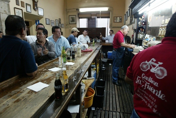 La rutina lleva siendo la misma desde casi seis décadas en su vida. Se ajusta el saco, los pantalones de vestir y los zapatos relucientes, y camina a solas por las calles del Centro Histórico, que cada vez reconoce menos por las remodelaciones constantes y las hordas de turistas. Nunca va acompañado; hace mucho que sus amigos más cercanos murieron, y en realidad siempre se sintió más cómodo en las costumbres de la soledad.Llega a la Plaza de la Liberación y entonces gira rumbo a Pino Suárez, en un recorrido que podría hacer con los ojos cerrados. Desde la esquina escucha el estrépito de la música, se le escapa un suspiro, se acomoda el saco con la misma inspiración de sus veinte años, y se adentra sin contratiempos en La Fuente. Se sitúa en un lugar desde donde pueda disfrutar de los ámbitos pero sin ser parte de los mismos; desde donde pueda ver las manos mágicas del pianista y cantar sin que nadie lo moleste, y pide lo que ha pedido desde siempre: una cerveza y un caballito de tequila.Luis José Acévez nació en Guanajuato en 1944, pero llegó a Guadalajara cuando tenía cinco años, y desde entonces no ha vuelto a marcharse. Se considera a sí mismo un tapatío legítimo. "No conozco otro lugar que esta ciudad", afirma. La primera vez que puso un pie en La Fuente fue cuando tenía quince, llevado por su propio padre. Aquel día remoto, sentados lado a lado sobre la barra, su padre le confesó sin preámbulos que tenía una segunda esposa y familia, y que pensaba abandonar a la mamá de José.“Aquel día empecé a vivir” asegura José. “Fue la primera vez que mi padre me habló de hombre a hombre. Antes sólo me regañaba y me pegaba”. La Fuente, con su atmósfera única, representó una distracción para sus tristezas juveniles, y poco a poco José fue llevando a sus amigos, colegas y compañeros de trabajo, hasta que se volvieron clientes recurrentes en sus tardes de domingo inspiradas por boleros románticos y amores no correspondidos. No obstante, José jamás volvió a ocupar el mismo sitio en el que su padre, tantos años atrás, le hizo la confesión que le cambió la vida. "A la barra ni me acerco", dice, con una sonrisa triste. Desde 1921, la Fuente ha sido por muchos años uno de los lugares más icónicos del Centro Histórico de Guadalajara, con sus noches largas donde pululan los mariachis que estremecen los corazones de los comensales como un viento de paso, con la voz de estrépito del pianista solemne cuya voz retumba por todos los recintos sin la necesidad de un micrófono, y con la imagen de la bicicleta polvorienta aguardando sin éxito el regreso de su dueño.Ya centenaria, la Fuente ha estado presente en el imaginario tapatío incluso desde antes que se construyera, en la misma manzana, el Congreso del Estado de Jalisco. El nombre proviene del establecimiento original, ubicado sobre la calle Hidalgo, pero a raíz de las remodelaciones llevadas a cabo por el gobernador González Gallo a mediados del siglo pasado, en las que restructuró de raíz la lógica del Centro Histórico, la Fuente pasó a la calle Pino Súarez #78, donde sigue al sol de hoy.Por muchas décadas el único acceso permitido era para los hombres y esto no cambió sino hasta la década de los 80. A través de los pasillos largos de la Fuente han desfilado todo tipo de personalidades: actores, deportistas, cantantes, gobernadores del estado, diputados y escritores.Luis José Acévez sigue asistiendo a la cantina porque es uno de los pocos lugares que le recuerdan al Jalisco que ya no existe, a la Guadalajara que se fue, aunque en el fondo reconoce que quizás sea una trampa de sus melancolías. “Sí ha cambiado la Fuente” admite. “Ahorita ya ves de todo, hay mucho extranjero, mucho joven colorido que como contrasta con el lugar, ¿no?”, se carcajea. No obstante, aunque la modernidad le deja el sentimiento de que está siendo relegado, la Fuente sigue siendo para él un sitio donde puede sentarse a recordar y a suspirar. “Voy a seguir viniendo hasta que ya no pueda caminar”, finaliza.A dos kilómetros de distancia, sobre la Calzada Independencia y esquina con la calle Gante, “La sin rival” ostenta el título de ser la cantina más antigua de Guadalajara, o, al menos, la primera en obtener el permiso oficial para vender alcohol en sus recintos. Con 124 años de existencia, previa al periodo revolucionario, la "Sin Rival" ya tenía sus puertas abiertas cuando Porfirio Díaz envejecía en el otoño de su presidencia eterna, y cuando Guadalajara estaba dividida por el río San Juan de Dios, muchos años antes de que fuera entubado y se construyera encima la Calzada Independencia.De acuerdo con el libro Los decenios de Guadalajara, de Guillermo Gómez Sustaita, la cantina legendaria ya estaba presente cuando el lago de Chapala quedaba a tres horas de distancia del área metropolitana, cuando el Agua Azul no era un parque sino manantiales de agua fresca, y cuando en Guadalajara seguía existiendo la pena de muerte. En los años de gloria de la "Sin rival", al construirse la Central Camionera en la década de los 50, en su barra llegaron a sentarse personalidades de la época de Oro del cine mexicano, actores y cantantes tales como Pedro Infante, Javier Solís y Agustín Lara, que tomaron los tragos legendarios por los cuales la cantina sigue siendo visitada hoy en día.Otra de las cantinas icónicas de Guadalajara es el "Mascusia", fundada en 1928 en las postrimerías de la Guerra Cristera, y cuyo nombre original era la "Oriental", localizada en las calles Dionisio Rodríguez y Alfareros. El nombre “Mascusia” es el resultado de un juego de palabras entre los comensales más asiduos en torno a la palabra “mascullar”. La Oriental estaba muy cerca de la ya extinta plaza de toros el Progreso, la cual era una de las construcciones más icónicas de la ciudad hasta que fue demolida en 1979 para dar paso al recorrido de la Plaza Tapatía.Uno de los distintivos de