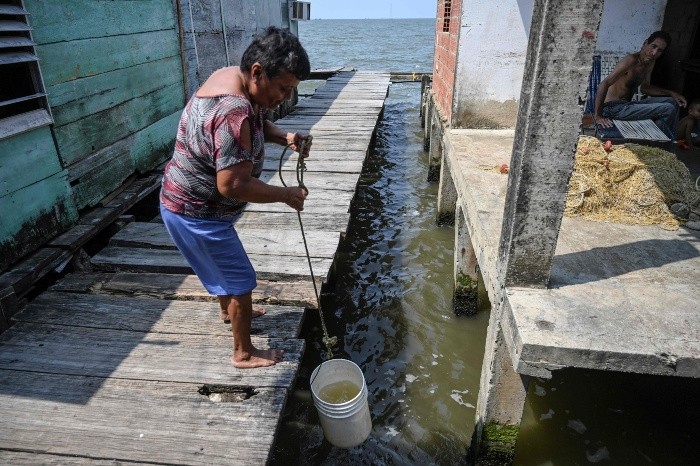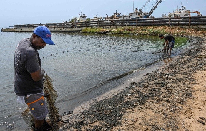 Los peces que Juan Maurice atrapa son tan pequeños que sólo pueden comerse fritos. Empobrecido por la crisis venezolana, este albañil prueba suerte con la atarraya en las contaminadas aguas del Lago de Maracaibo para llevarse algo a la boca.Pesaba 75 kilos y en los dos últimos años dice haber perdido 16. Por necesidad se aventura con su tío Alfredo a lanzar una vieja red que ambos arrastran unos 100 metros, batallando con una superficie fangosa."Hoy podemos estar aquí y mañana podemos estar en el monte buscando conejos o iguanas", relata a AFP Juan, de 35 años, durante la faena. Su rostro demacrado lo hace ver mayor.Sacó 20 crías de "carpeta", pez que puede alcanzar los 30 centímetros, pero los suyos apenas miden ocho. También capturaron un pequeño cangrejo azul y tres peces agujones raquíticos, cuyo consumo es inusual.Juan vivía holgado con su salario como albañil y soldador en esta región petrolera, que antaño nadó en riqueza. "Antes mi sueldo daba para comer, para guardar, para hacerle arreglitos a mi casa, daba para todo", relata mientras desenreda los peces.Pero con una economía reducida a la mitad desde 2014, el empleo escasea y no hay bolsillo que aguante.Por eso depende de "marañitas" (trabajos ocasionales) para llevar comida a sus siete hijos, "todos flaquitos", cuenta.Juan y su familia pescan en San Francisco, municipio vecino de Maracaibo, cuyas costas son cubiertas por constantes derrames de crudo, el oro negro que abunda en Venezuela como en ningún otro país."No sabemos si eso (los peces agujones) se comía o no, pero debido a la situación, arriesgándonos, o para solventar algo, lo comemos", dice sobre la especie de cuerpo alargado y filoso pico.En una playa cercana un grupo de niños y jóvenes aprendices también pescan. La caza de palomas, conejos, báquiros o venados, antes una diversión, se realiza ahora ante la imposibilidad de visitar las carnicerías por los altos precios, cuentan pobladores.Marcy Chirinos camina entre calles desoladas del centro de Maracaibo, días después del apagón del 7 de marzo, el peor que haya vivido Venezuela. Cinco días de oscuridad sembraron un caos en el que medio millar de negocios fueron saqueados en el estado Zulia (oeste)."Ahora no tengo nada para comer", se queja Marcy, quien cubre su cabeza con un trapo viejo para protegerse del lacerante sol de esta región donde las fallas eléctricas suman una década.Como barrendera de la oficialista alcaldía de Maracaibo gana el sueldo mínimo, equivalente a seis dólares que alcanzan para dos kilos de carne. "No es posible que uno viva así, me tengo que poner la ropa sucia porque no tengo agua y no me alcanza para comprar detergente", se queja.Pero su mayor agobio es la falta de comida. Muy delgada, trata de ayudar con la alimentación de sus cinco nietos, una labor casi imposible."Si están vendiendo algo, es carísimo, el arroz, la harina, entonces ahora quieren venderlo por dólares, no puede ser, ¿dónde voy a encontrar dólares?", se pregunta Marcy vestida con ropa maloliente.Los saqueos empeoraron las dificultades que ya padecía, pues la mayoría de los comercios siguen cerrados."La ropa ya no me queda", cuenta, con un ancho y desgastado pantalón. "Lo que medio rapiñamos (conseguimos) es para los carajitos (niños). Me acuesto pensando en que Dios nos haga un milagro".Ana Angulo contempla una hilera de comercios cerrados en el otrora pujante corazón comercial de Maracaibo. De cabello blanco, cuesta escucharla por la suavidad de su voz."Mira esta soledad, esto es para morirse", exclama con mirada triste que apunta hacia las calles donde antes costaba caminar sin tropezarse. A sus 77 años no recuerda una precariedad semejante. "El hambre me da dolor de cabeza".Cuando Hugo Chávez, quien presidió el país entre 1999 y 2013, vivía, dice, "no se veía esto". "Chávez nos daba, Chávez era muy bueno", asegura al quejarse del hambre que padece su familia por una crisis recrudecida durante el actual gobierno de Nicolás Maduro."El hambre lo tumba a uno", dice con voz apagada.En otro punto Jaime Romero, de 31 años, arrastra a su madre en una vieja silla de ruedas en busca de que alguien les dé un bocado. "Tenemos que salir a buscar quién nos regale comida", dice.Antes de caer la noche Juan Maurice volverá a una playa llena de basura y restos de petróleo para tratar de conseguir peces más grandes o camarones. "Me siento mal porque nunca me había visto en esto, todo está caótico".JM