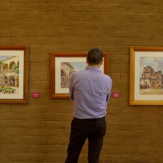 Entre el piso de aserrín y los muros de adobe, recorrieron la exposición los primeros visitantes, mientras el museógrafo y curador Luis Eduardo López explicó que se seleccionaron 35 acuarelas de entre 150 pertenecientes a la colección de la Fundación J. Álvarez del Castillo, con la intención de que fuera una muestra representativa y que estuviera acorde con el espacio.