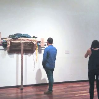 Por ejemplo, existe una pieza que está conformada por réplicas del material que utilizan los pintores para trabajar, como palos y envases. La curadora explicó que esos objetos tratan de hablar del cuerpo como “esta presencia que deja su huella en instrumentos de uso cotidiano, arquitectura o espacio urbano, esa marca te habla de cómo alguien vive a nivel personal, pero también a nivel colectivo”.