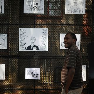 Los visitantes observan con detalle cada una de las caricaturas entre risas y debate. "Me parece genial que los kenianos muestren la otra cara de una visita que nos han vendido como perfecta", explica a Efe Oana Gemseh, una de las visitantes.