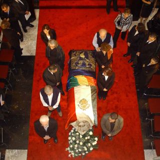 Sobre una gran alfombra roja y acompañados por autoridades del Consejo Nacional para la Cultura y las Artes ( Conaculta), y de las secretarías de Educación Pública (SEP) y de Cultura capitalina, los restos del autor 'Apocalipstick', quien falleció la víspera por problemas respiratorios, fueron recibidos en medio de una lluvia de aplausos.