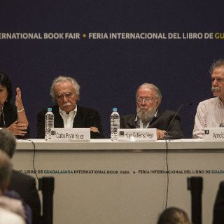 Desde el inicio del homenaje, la escrita Elena Poniatowska presenció los argumentos del estrado, en medio de un salón lleno por familiares, académicos e intelectuales, entre los que destacó la directora de la FIL, Marisol Schulz.