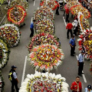 Los colombianos realizan el tradicional recorrido ''Silleteros'', en el que acarrean a la espalda pesados arreglos florales