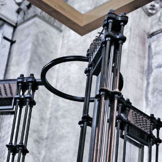 El aparato de cuatro metros de altura está compuesto por controles, circuitos, tubos al vació, un cilindro hueco y un conjunto de cuerdas divido en tres arpas